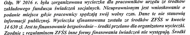 Tymczasem oficjalnie w Piątnicy wszystko jest w należytym porządku, czyli po staremu. Część z gminnych urzędników, jak wynika z udzielonej przez wójta i mieszkańców informacji, za znaczną kwotę ok. 14000 zł z funduszu socjalnego poleciała w tym roku do słonecznej Hiszpanii, wszak wypocząć trzeba, szczególnie gdy urząd „nękany” jest pismami.