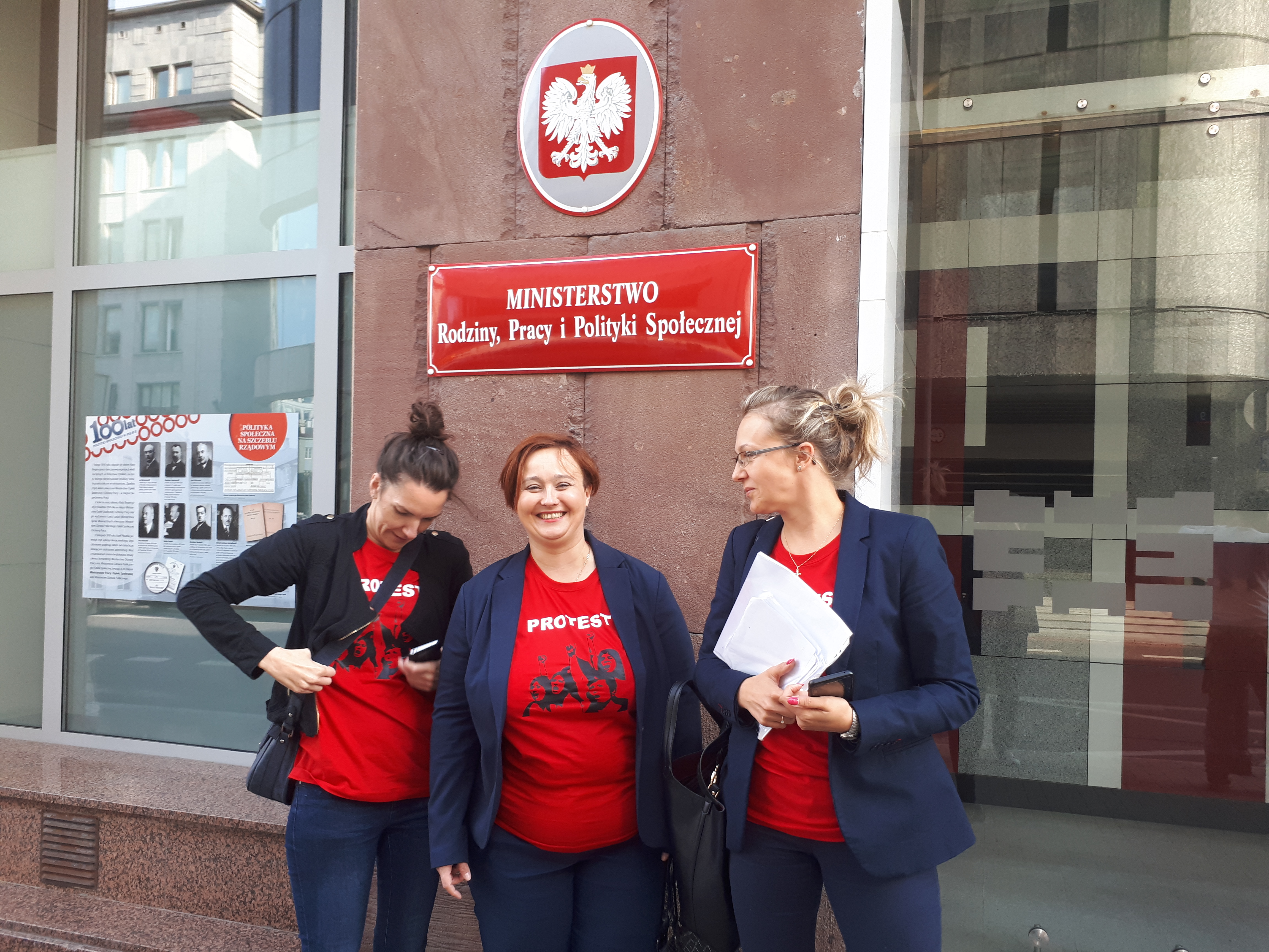Pilne Fiaskiem zakończyły się rozmowy w Ministerstwie Rodziny (MRPiPS) w sprawie postulatów pracowników pomocy społecznej. Pomimo udzielonego nam wsparcia przez obecne na miejscu organizacje pracodawców, Ministerstwo zasłania się niemocą w zakresie proponowanych zmian legislacyjnych. Ogólnopolski Komitet Protestacyjny (OKP) wzywa wszystkie środowiska pracowników pomocy społecznej do czynnego włączenia się w działania protestacyjne. o których będziemy informować.