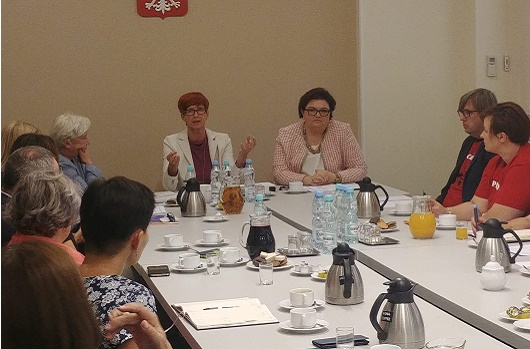 Na wstępie dzisiejszego spotkania usiłowano przekonać obecnych, że terminy działań protestacyjnych oraz spotkania "informacyjnego" dotyczącego sytuacji pracowników socjalnych oraz asystentów rodziny są przypadkowe. Trudno było jednak nie odnieść wrażenia, że jest zupełnie inaczej - na spotkaniu pojawiła się bowiem sam Minister Elżbieta Rafalska, Wiceminister Elżbieta Bojanowska oraz dyrektorzy departamentów, a podczas rozmowy Minister Rafalska kilkakrotnie odnosiła się wprost do listu wystosowanego do niej przez OKP.