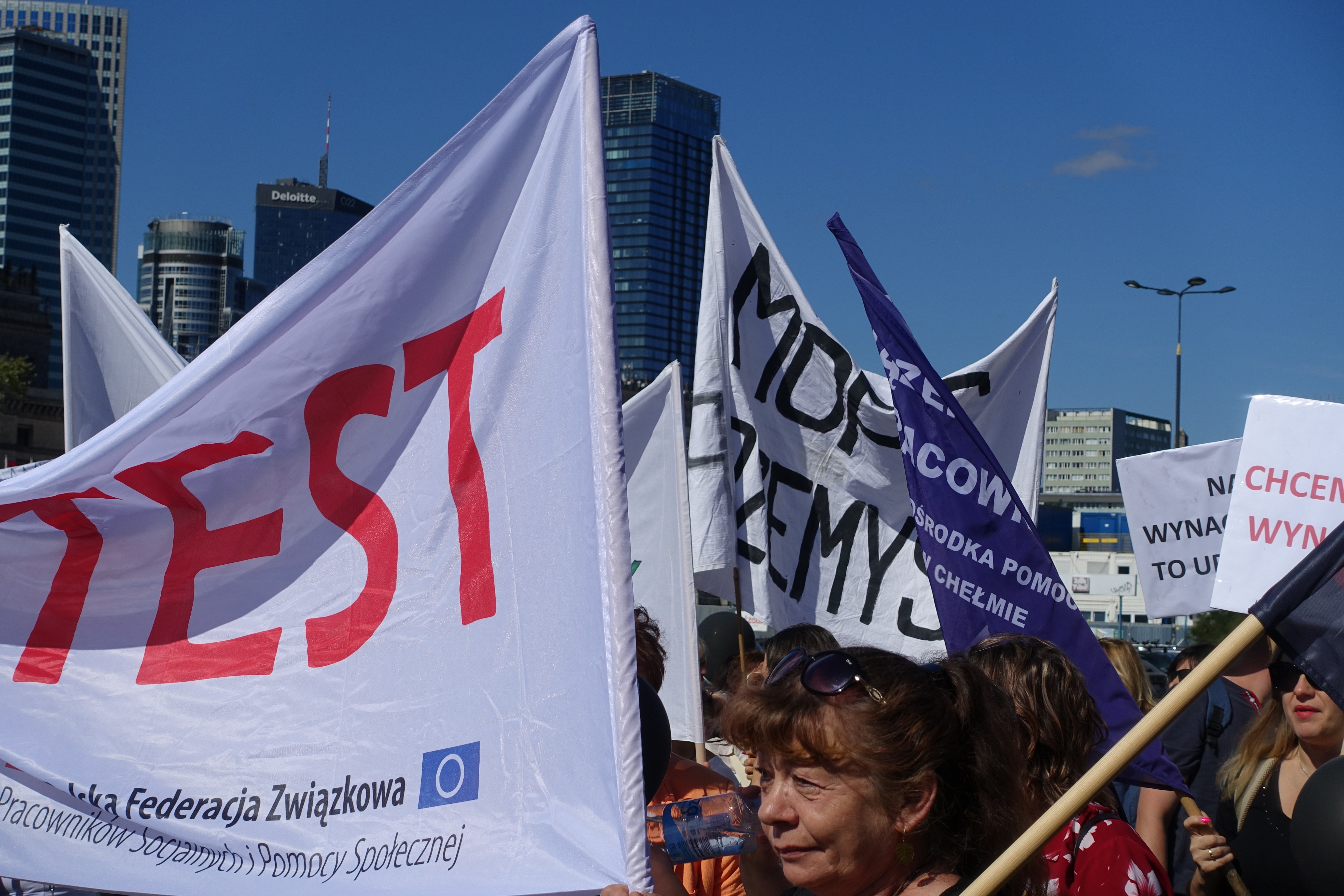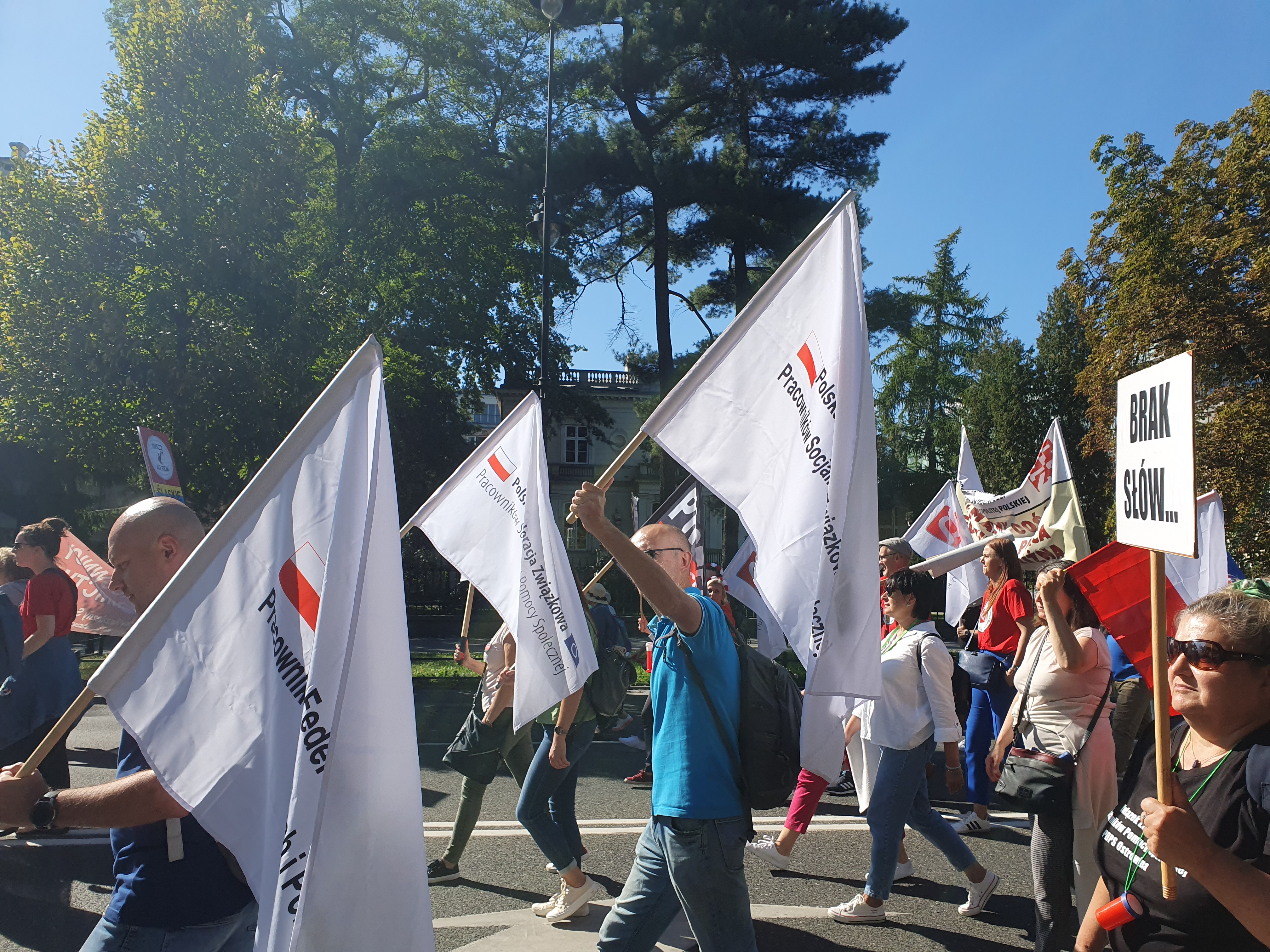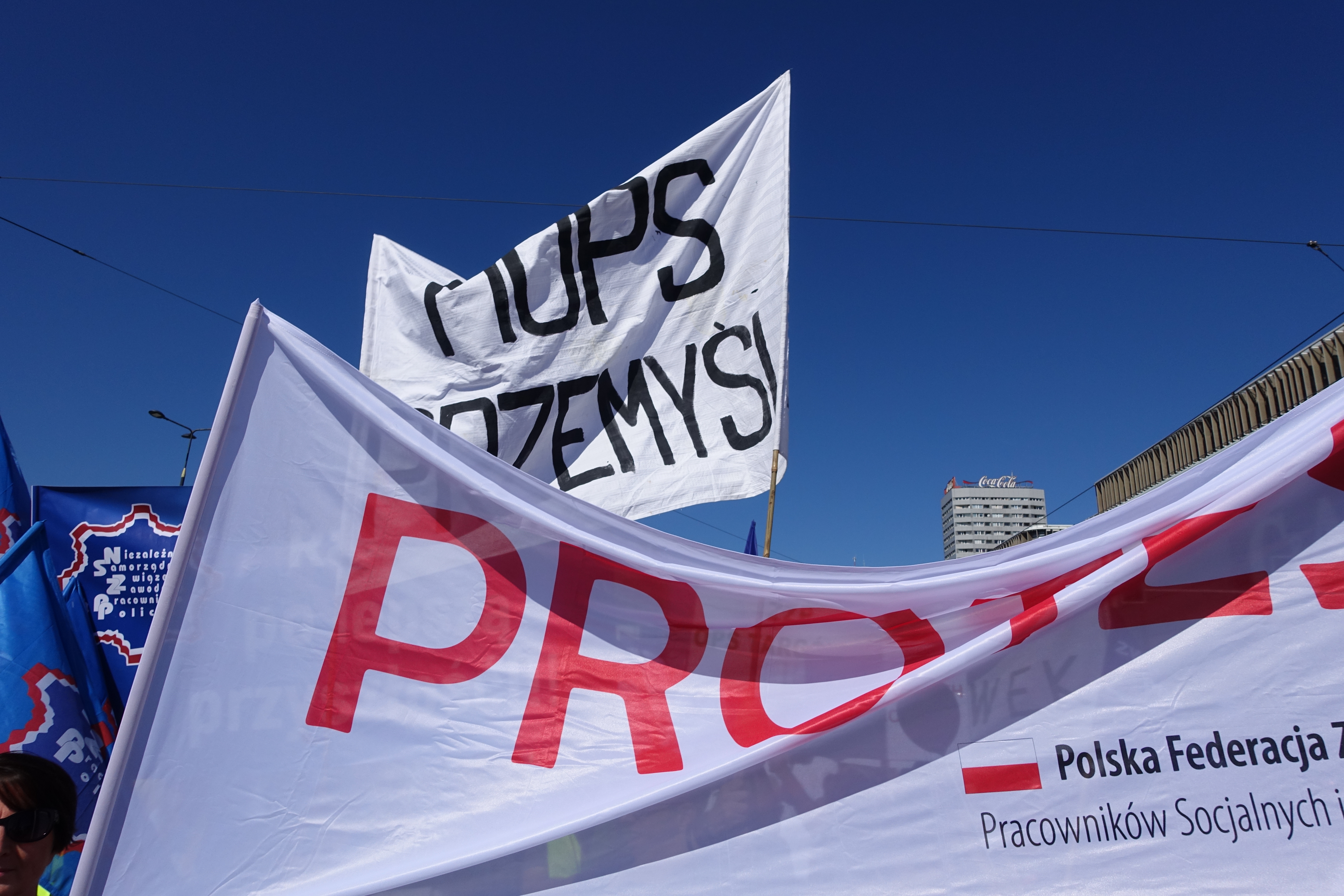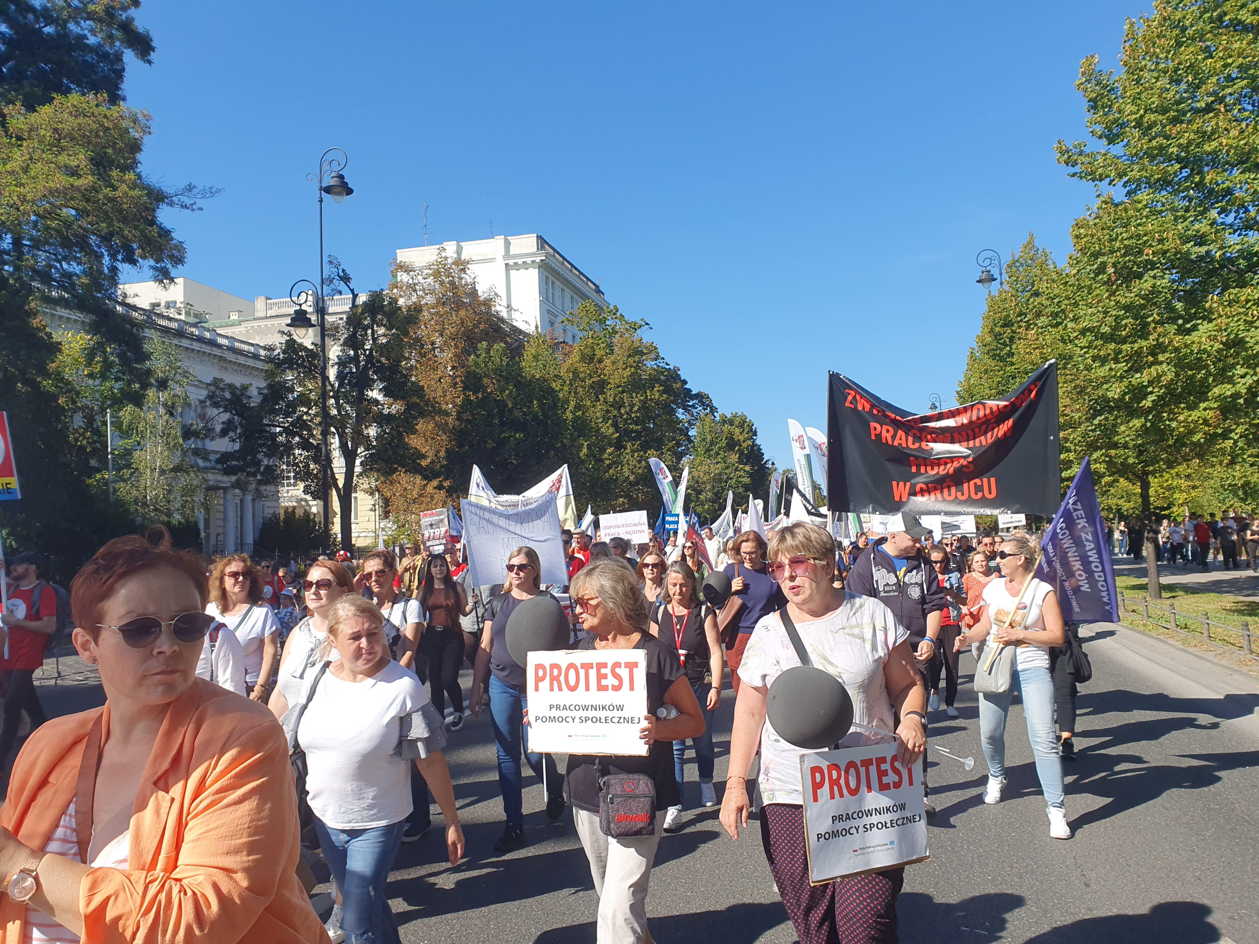 Pracownicy pomocy społecznej dołączyli do ogólnopolskiego Protestu Pracowników Sfery Publicznej. Wraz z pozostałymi przedstawicielami zawodów realizujących zadania publiczne przemaszerowaliśmy ulicami Warszawy, by przed siedzibą Sejmu oraz Premiera złożyć petycję, a przede wszystkim zamanifestować nas sprzeciw wobec polityki rządu w zakresie warunków wynagradzania i pracy w naszej branży.
