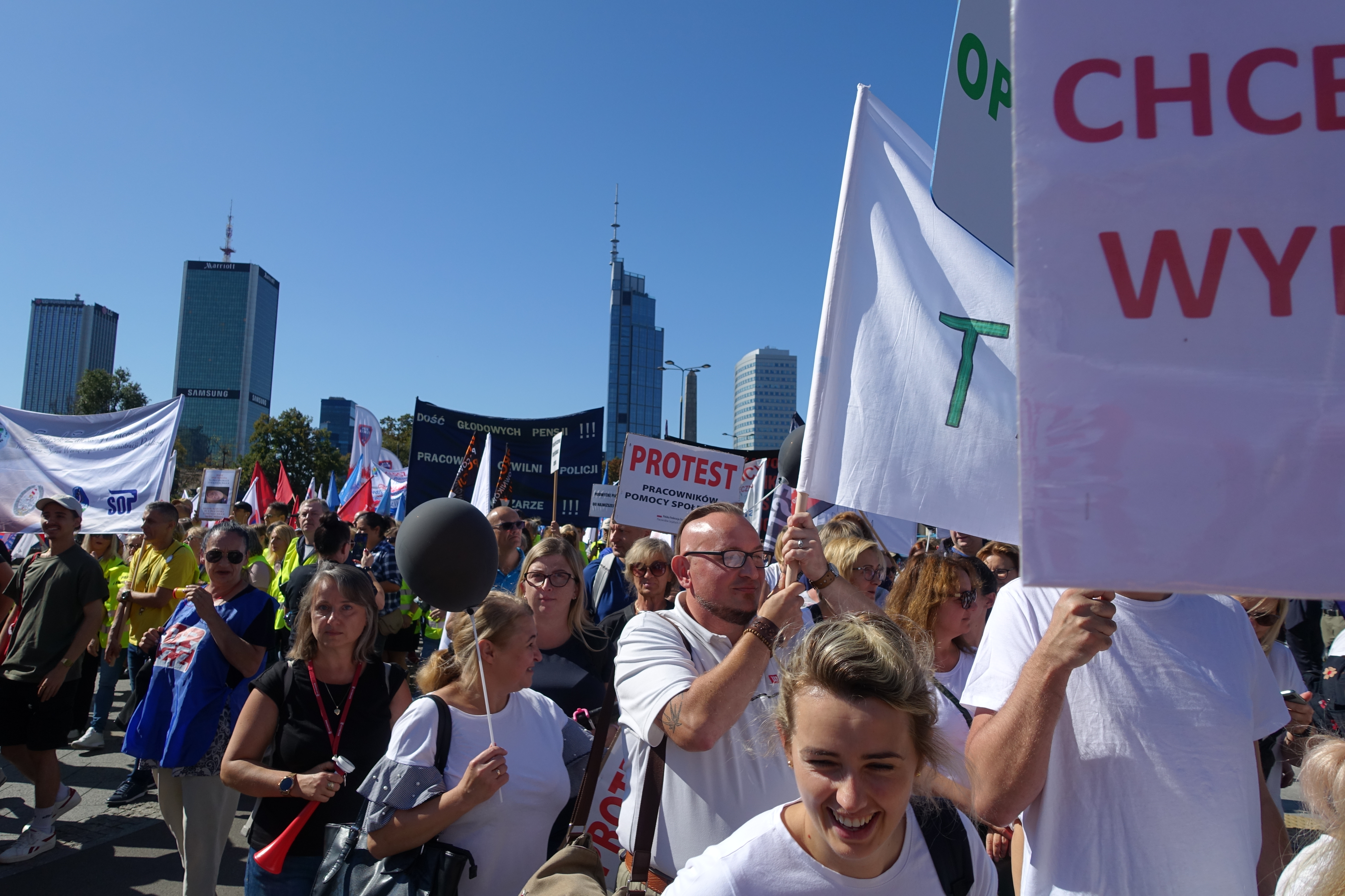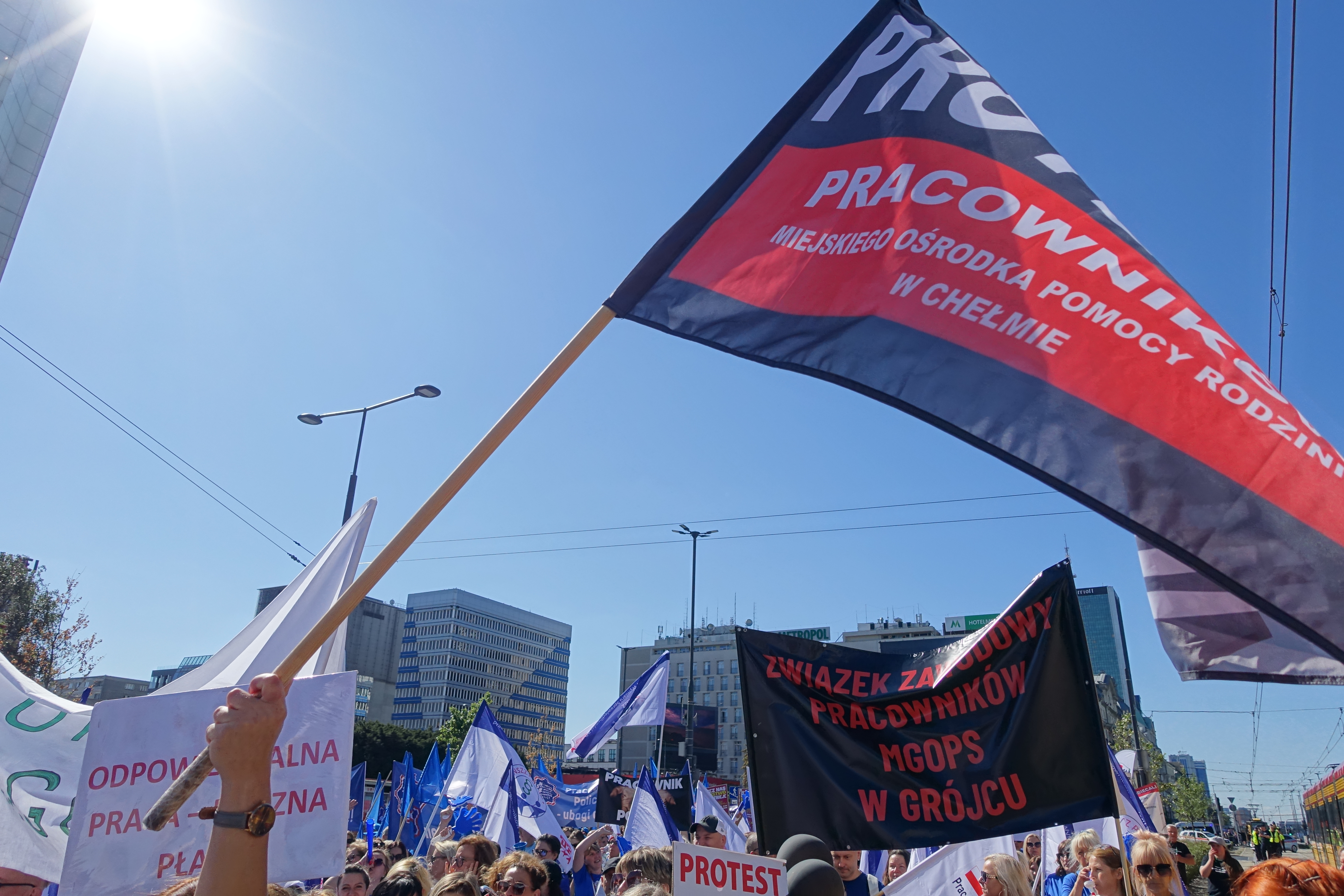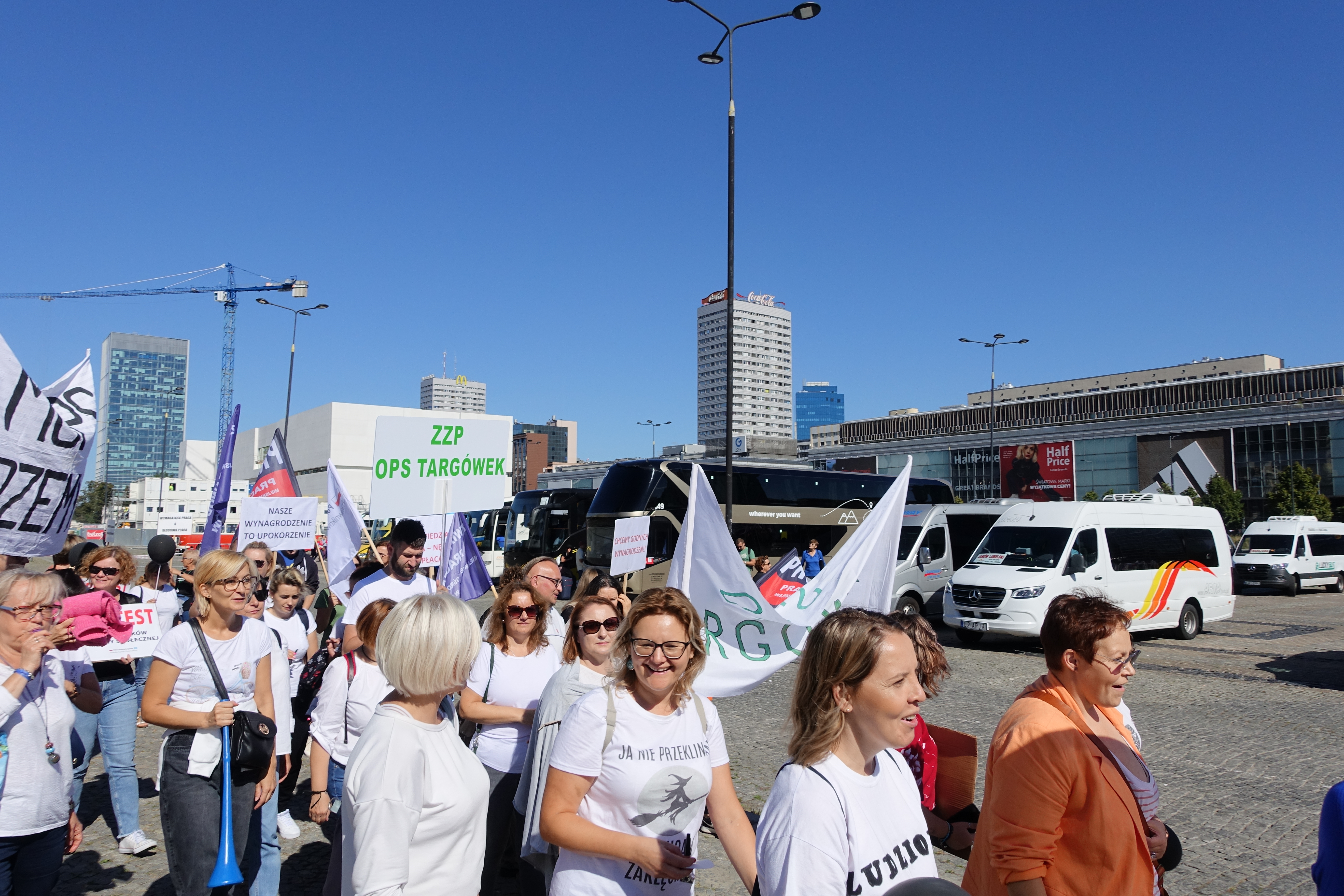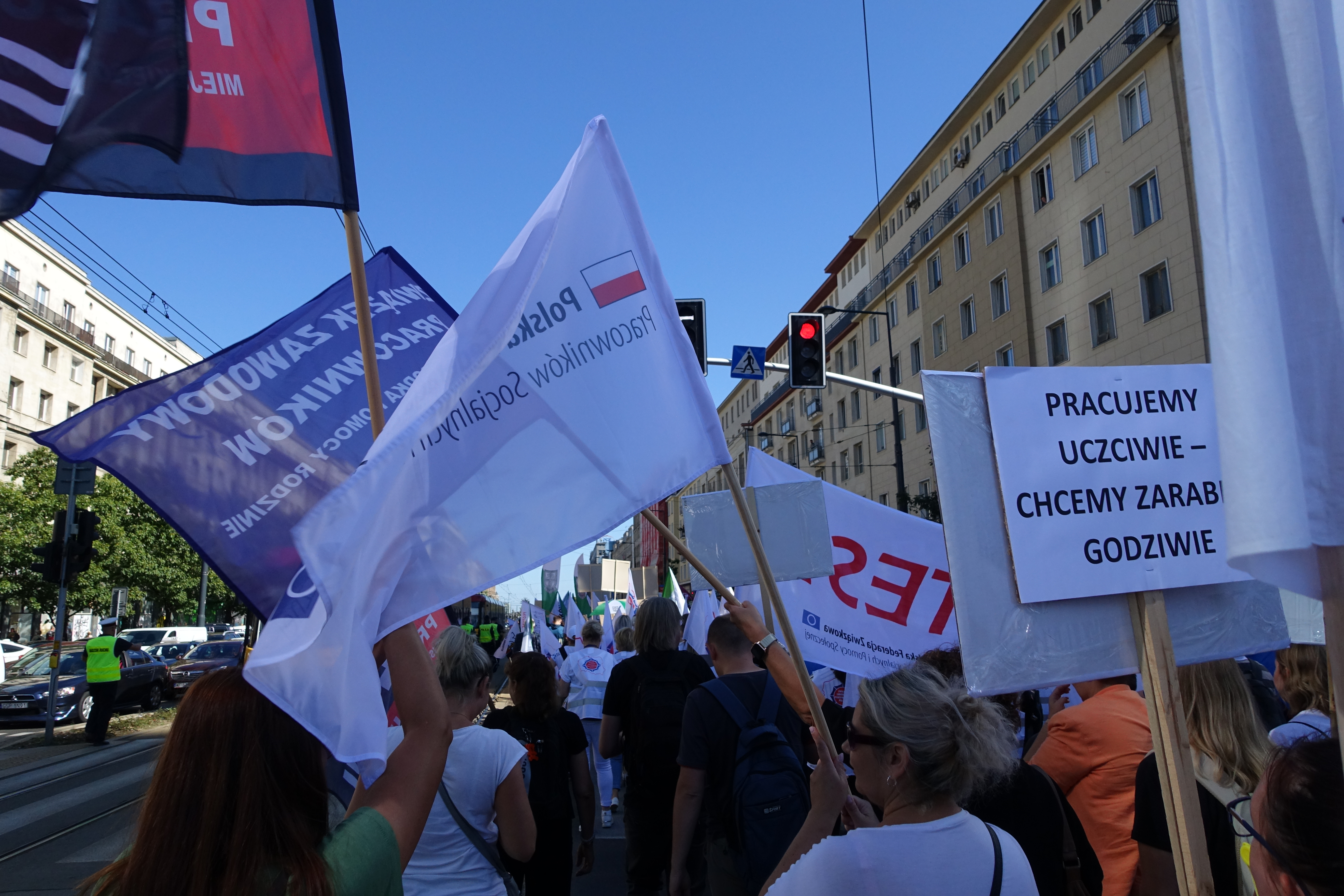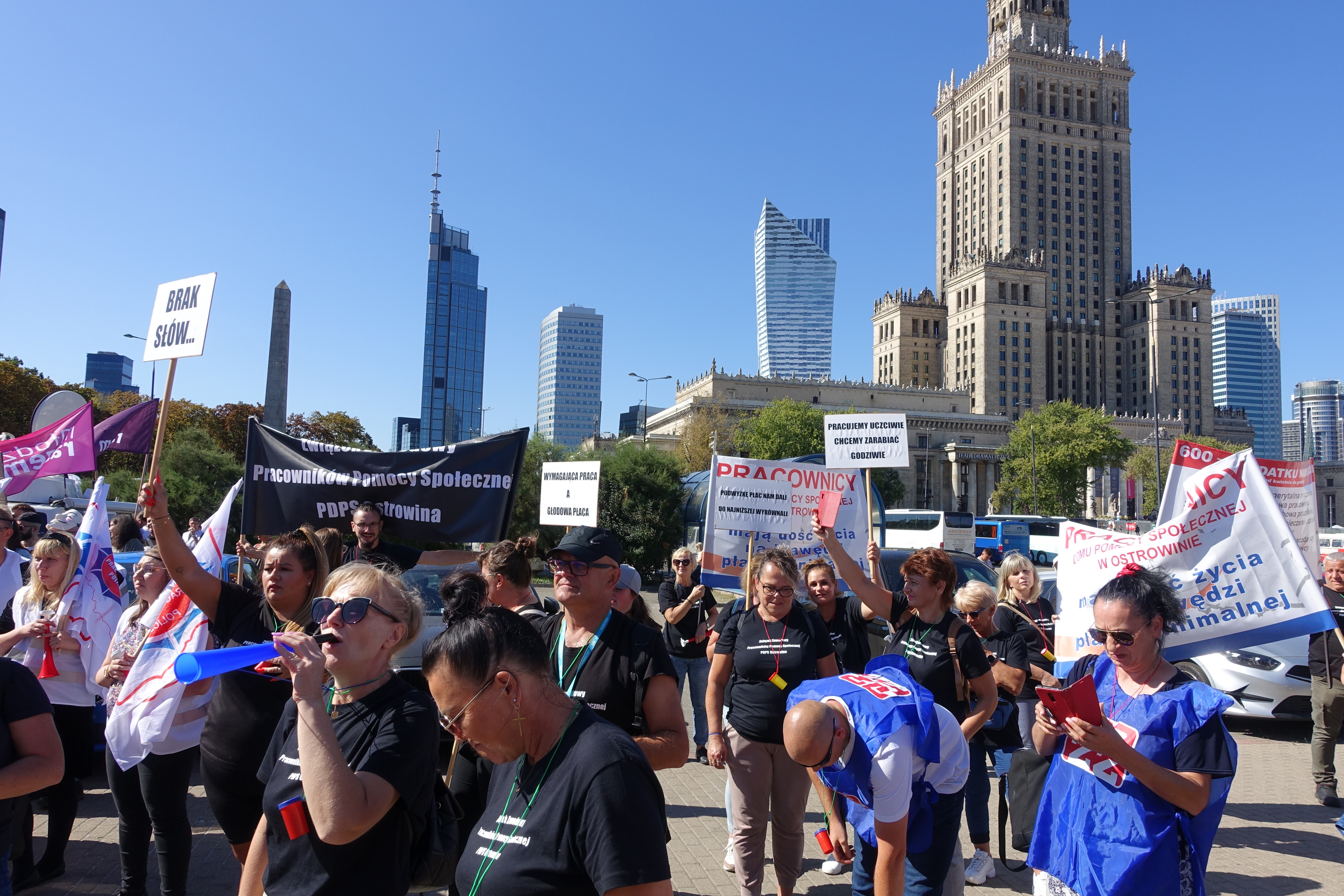 Pracownicy pomocy społecznej dołączyli do ogólnopolskiego Protestu Pracowników Sfery Publicznej. Wraz z pozostałymi przedstawicielami zawodów realizujących zadania publiczne przemaszerowaliśmy ulicami Warszawy, by przed siedzibą Sejmu oraz Premiera złożyć petycję, a przede wszystkim zamanifestować nas sprzeciw wobec polityki rządu w zakresie warunków wynagradzania i pracy w naszej branży.