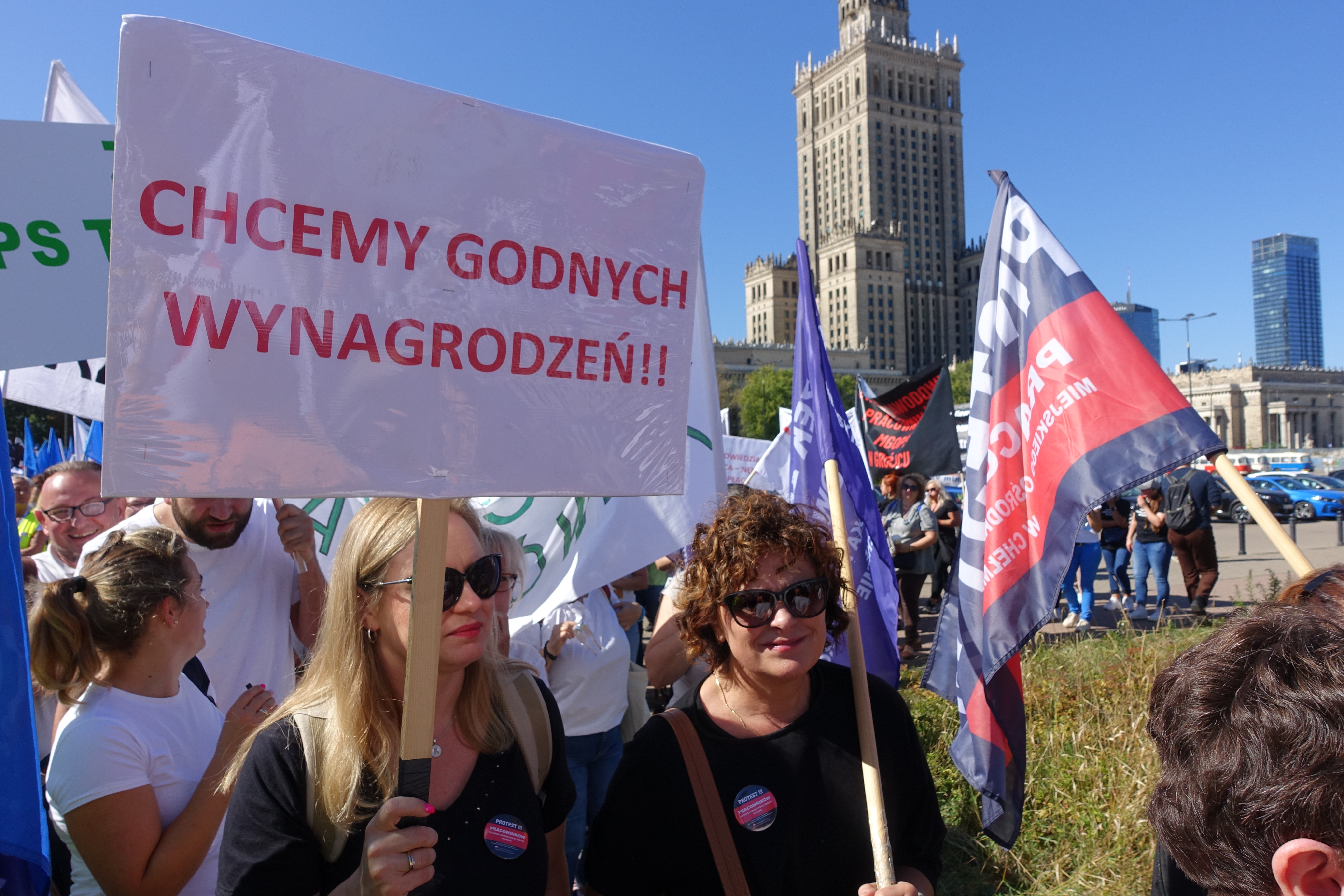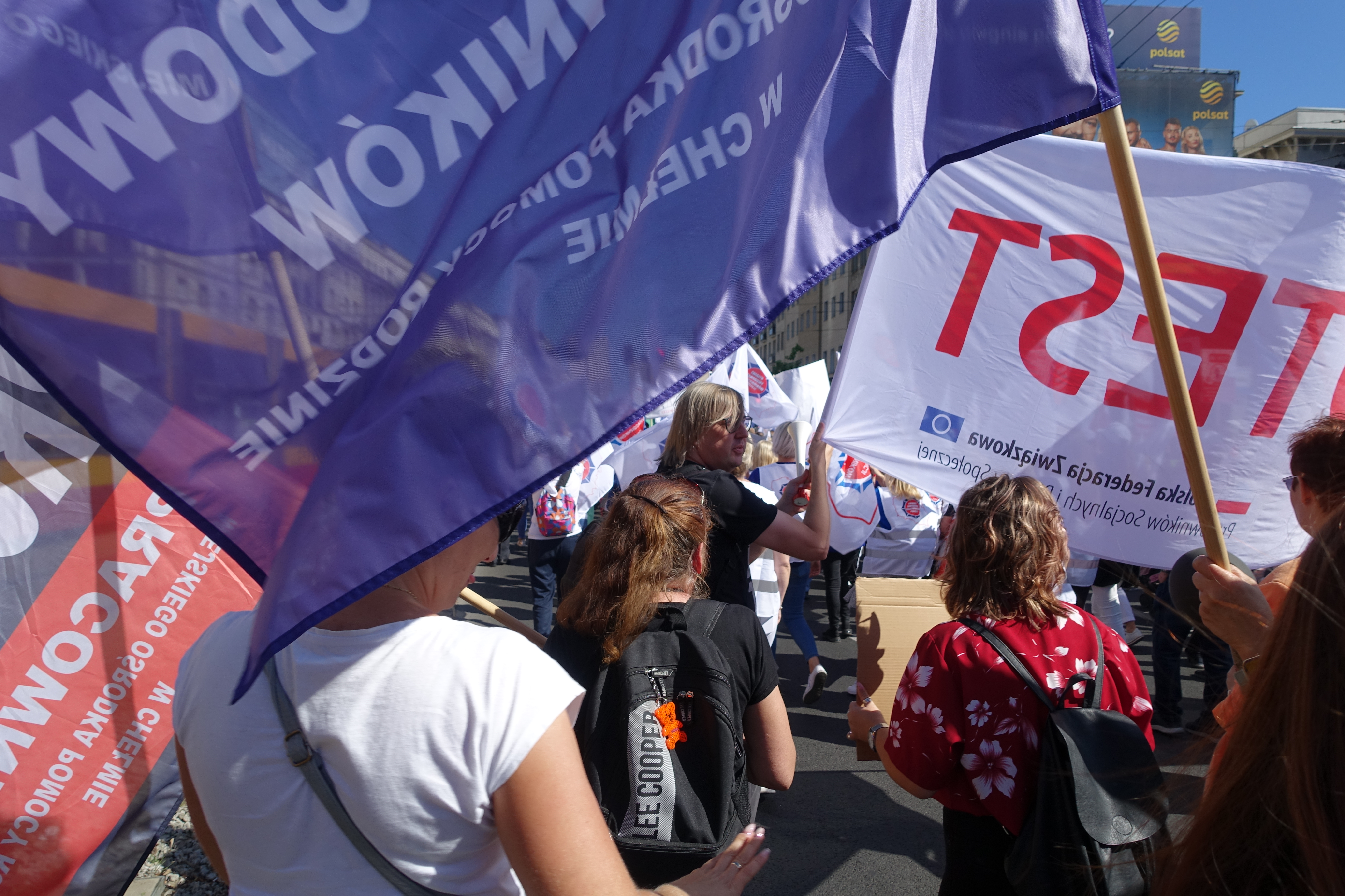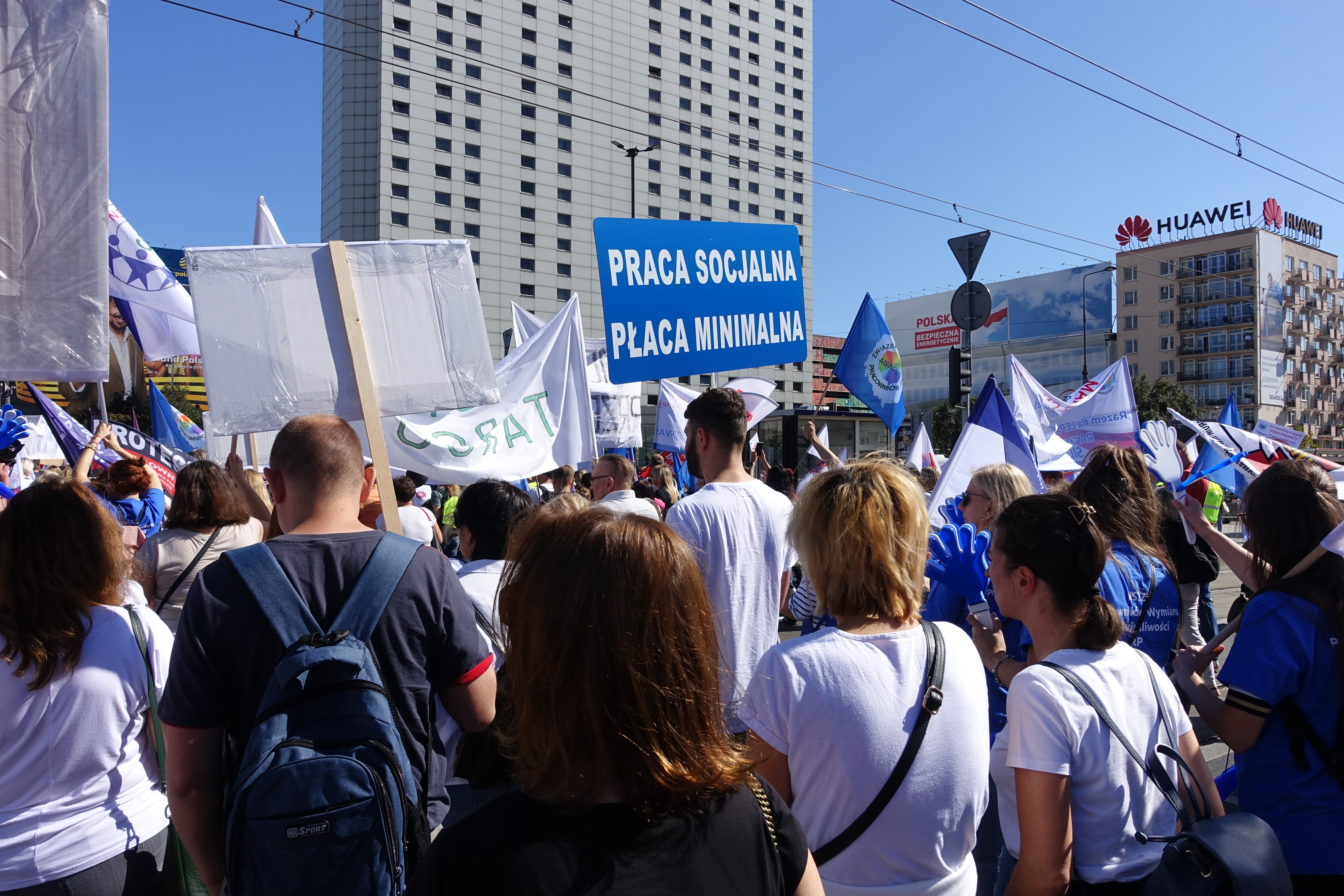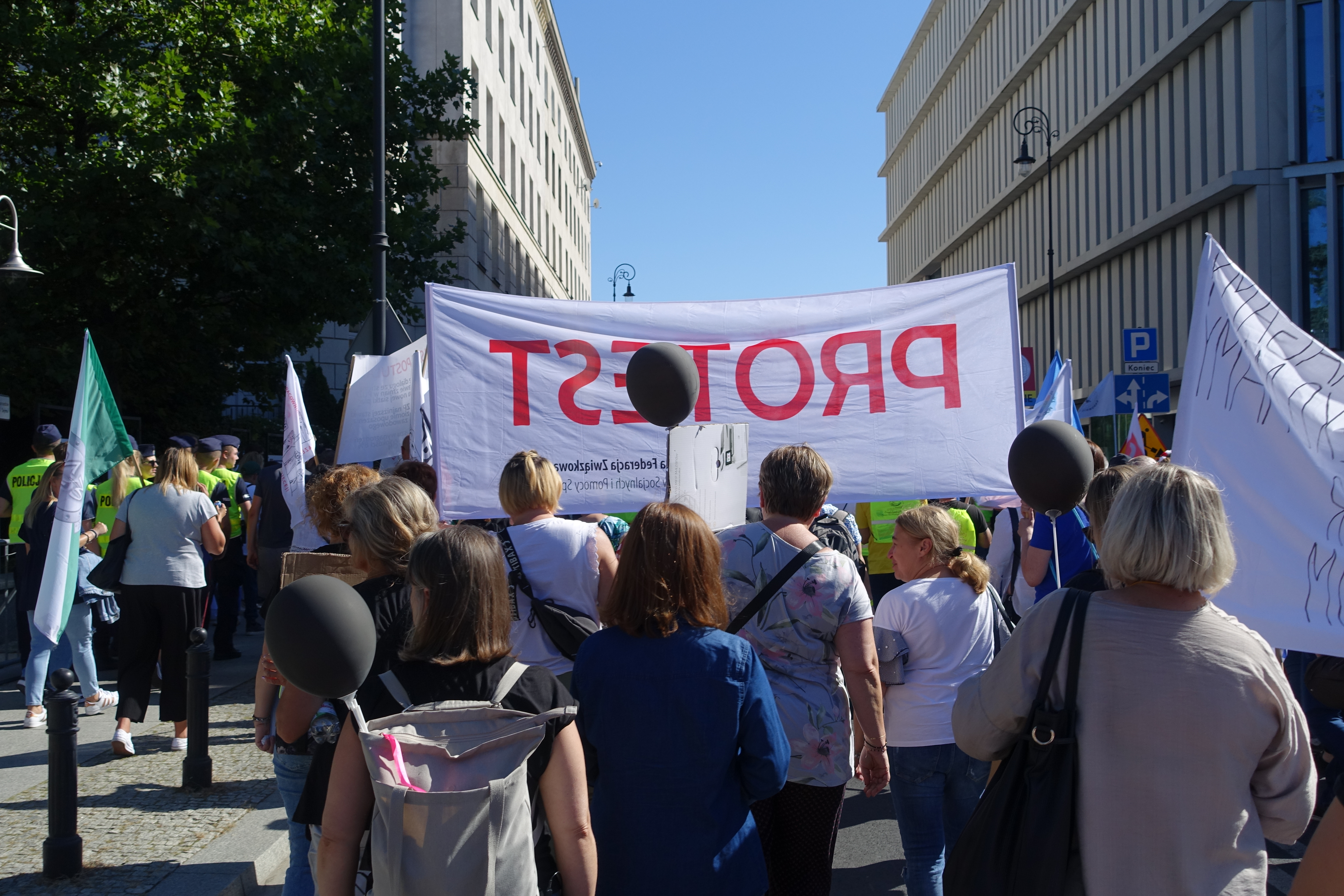 Pracownicy pomocy społecznej dołączyli do ogólnopolskiego Protestu Pracowników Sfery Publicznej. Wraz z pozostałymi przedstawicielami zawodów realizujących zadania publiczne przemaszerowaliśmy ulicami Warszawy, by przed siedzibą Sejmu oraz Premiera złożyć petycję, a przede wszystkim zamanifestować nas sprzeciw wobec polityki rządu w zakresie warunków wynagradzania i pracy w naszej branży.