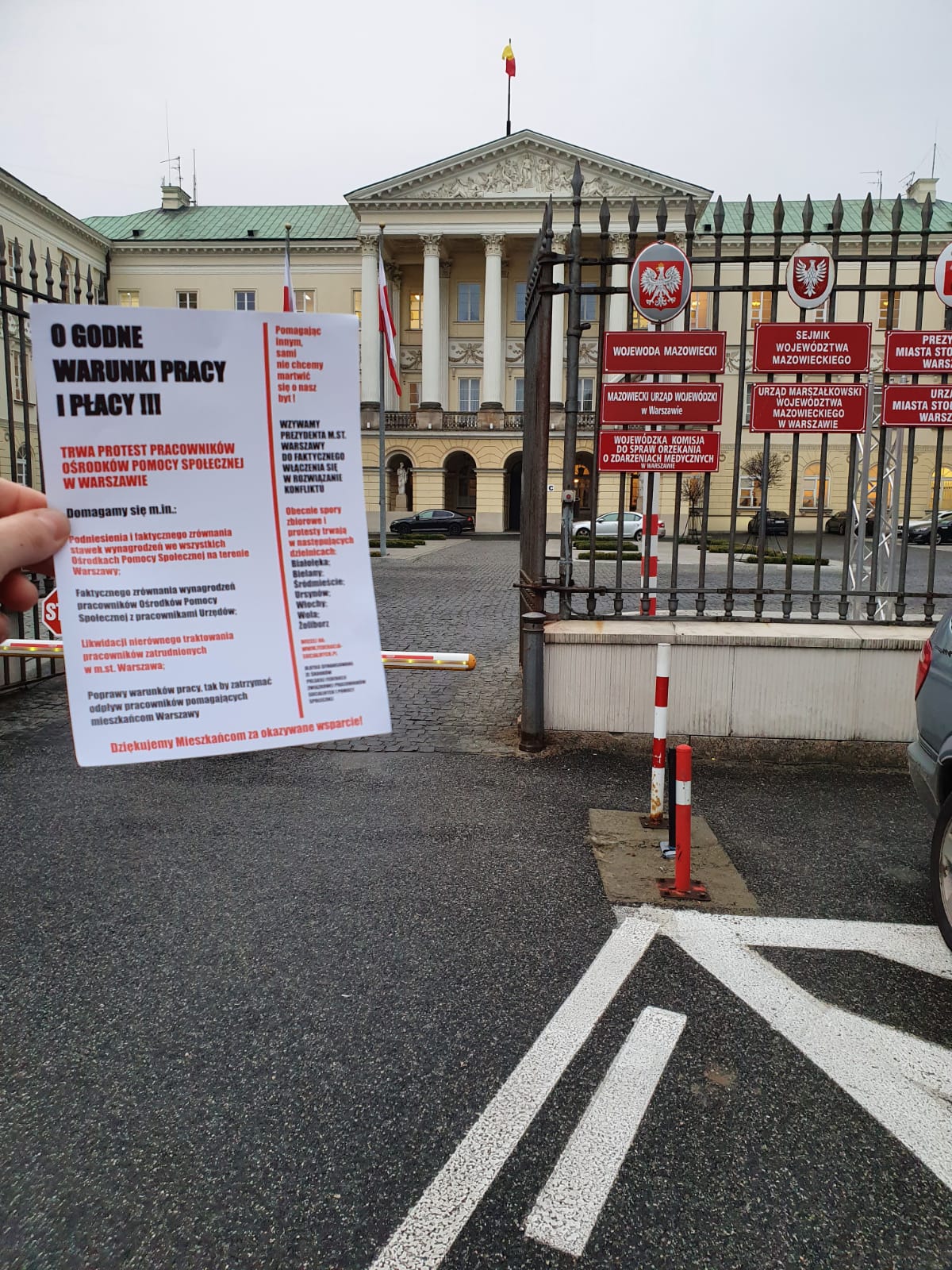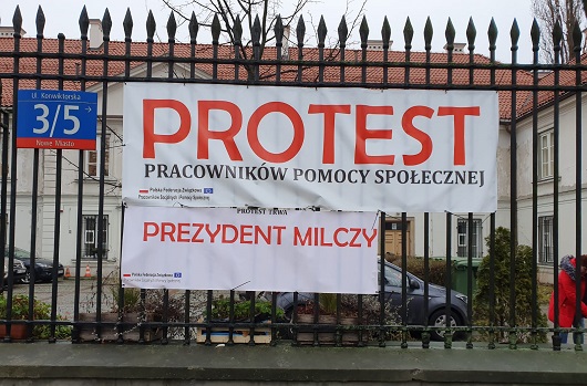 W dniu dzisiejszym w 7 dzielnicach Warszawy odbyła się kolejna odsłona protestu pracowników stołecznych jednostek pomocy społecznej. Rozdawano ulotki przed urzędami dzielnic, ośrodkami pomocy, warszawskim ratuszem, a także biurem pomocy i projektów społecznych. Na budynkach ośrodków umieszczono dodatkowe banery o treści "Protest trwa - Prezydent milczy", nawiązując tym samym do ignorowania postulatów związkowych przez miejskich urzędników. Strona społeczna już zapowiada stałe zwiększanie form protestu. O wydarzeniu szeroko informowały także lokalne media.