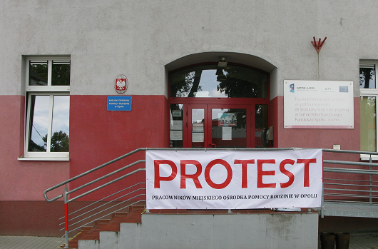 Pracownicy zrzeszeni w naszym członkowskim Związku działającym przy Miejskim Ośrodku Pomocy Społecznej w Opolu rozpoczęli zapowiadany protest. Na budynkach opolskich jednostek pomocy społecznej pojawiły się banery oraz plakaty informujące o trwającej akcji protestacyjnej. Strona związkowa nie wyklucza zaostrzenia działań