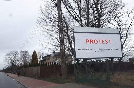 Billboard i baner protestacyjny przy głównych drogach Wierzbicy - to efekt braku porozumienia Federacji z kierownik miejscowego ośrodka pomocy społecznej po kolejnej już turze mediacji wznowionego sporu zbiorowego, wszczętego jeszcze w 2016 r. Pomimo druzgocącego dla pracodawcy wyroku Sądu Najwyższego w/s przywróconych do pracy strajkujących pracowników GOPS - postulaty Federacji w zakresie przestrzegania praw i wolności związkowych niestety pozostają aktualne.