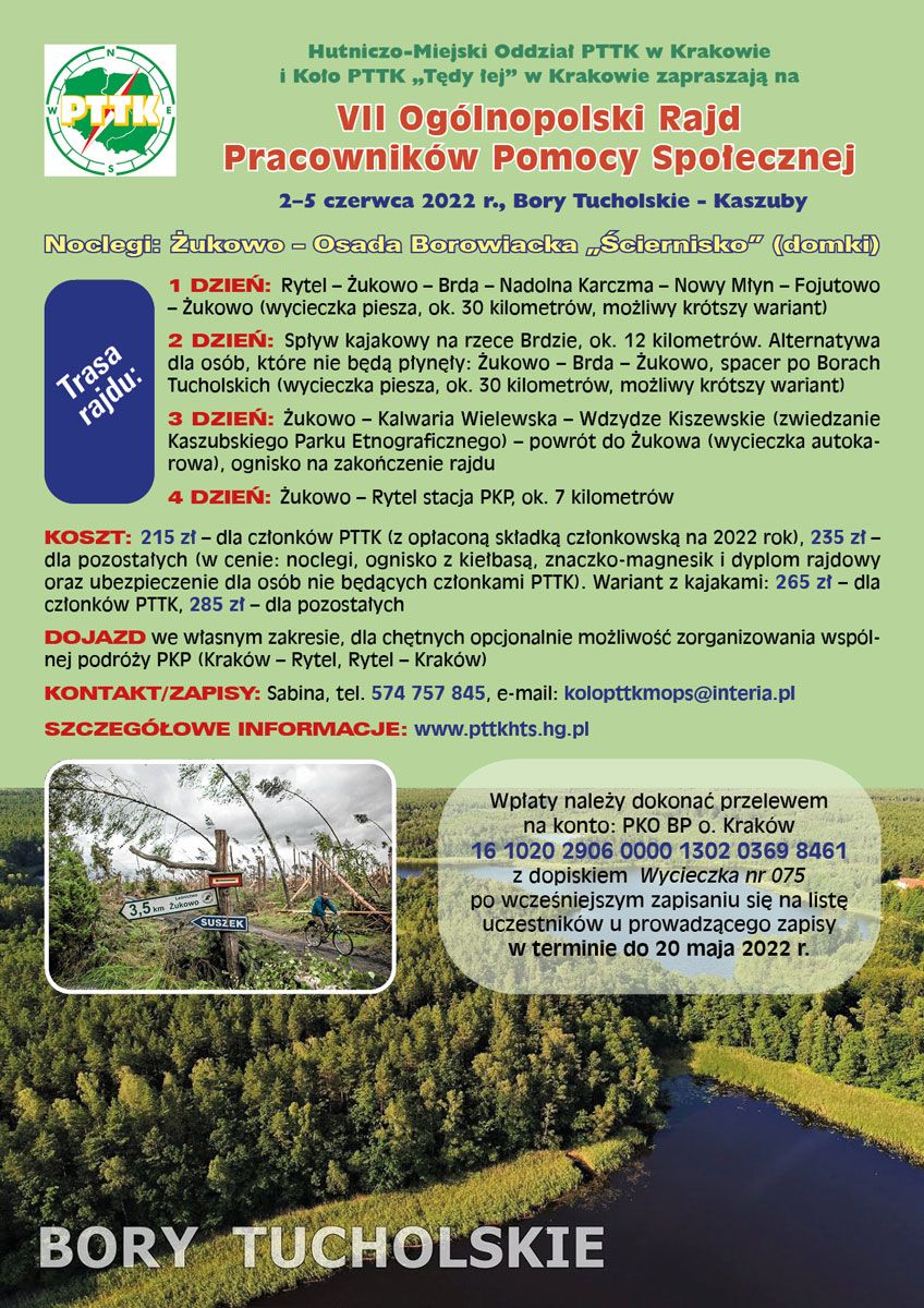 W dniach 2-5 czerwca odbędzie się VII Ogólnopolski Rajd Pracowników Pomocy Społecznej organizowany przez naszą federacyjną przyjaciółkę – Sabinę Korbiel i krakowski odział PTTK – Koło „Tędy łej”. Tym razem ruszymy w pieszą wędrówkę szlakiem Bory Tucholskie – Kaszuby. Gorąco zapraszamy do udziału w tym wyjątkowym wydarzeniu. Szczegółowe informacje dotyczące Rajdu i zapisów w dalszej części artykułu.