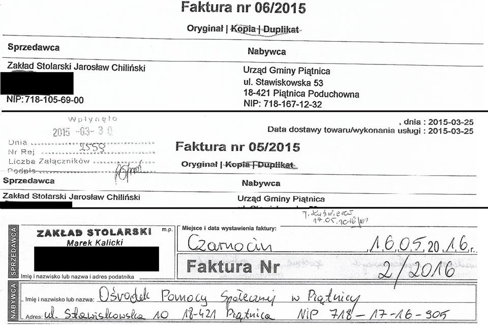 Gmina Piątnica również sporo wydaje na umeblowanie. Do urzędu i jednostek podległych zakupiono i wykonano wyposażenie, które także powędrowało do gabinetu samego wójta. Wykonawców wyłonionych w procedurach zamówień było kilku, w tym mąż obecnej pracownicy OPS oraz członek rodziny obecnej skarbniczki Urzędu Gminy.