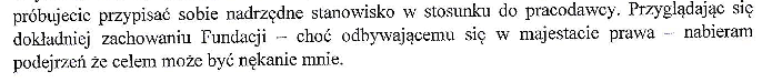 Wójt Piątnicy po tym jak Federacja postanowiła bronić praw i interesów zwolnionego kierownika, od początku usiłował przekonać naszą organizację by ta odstąpiła od statutowych i ustawowych działań m.in. poprzez odroczenie obrony zwolnionego pracownika, a także sugerując konsekwencje prawne. Włodarz Piątnicy nie omieszkał nawet zaapelować do Federacji o powstrzymanie się od wystąpień z zapytaniami publicznymi, gdyż te mogą rzekomo dezorganizować jego pracę i świadczą o nękaniu jego urzędu, choć rzeczowych argumentów na dowód prześladowania nie podaje.