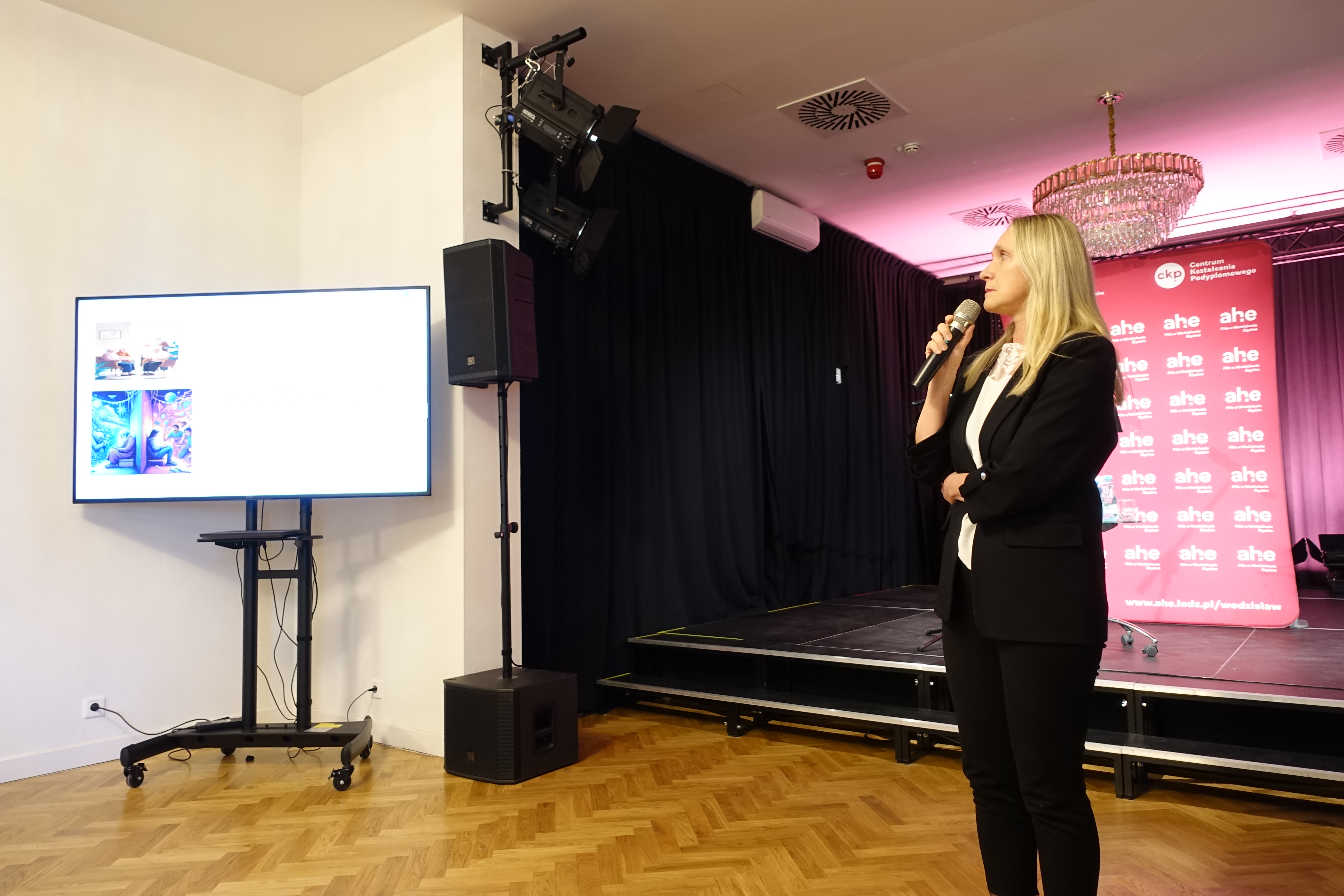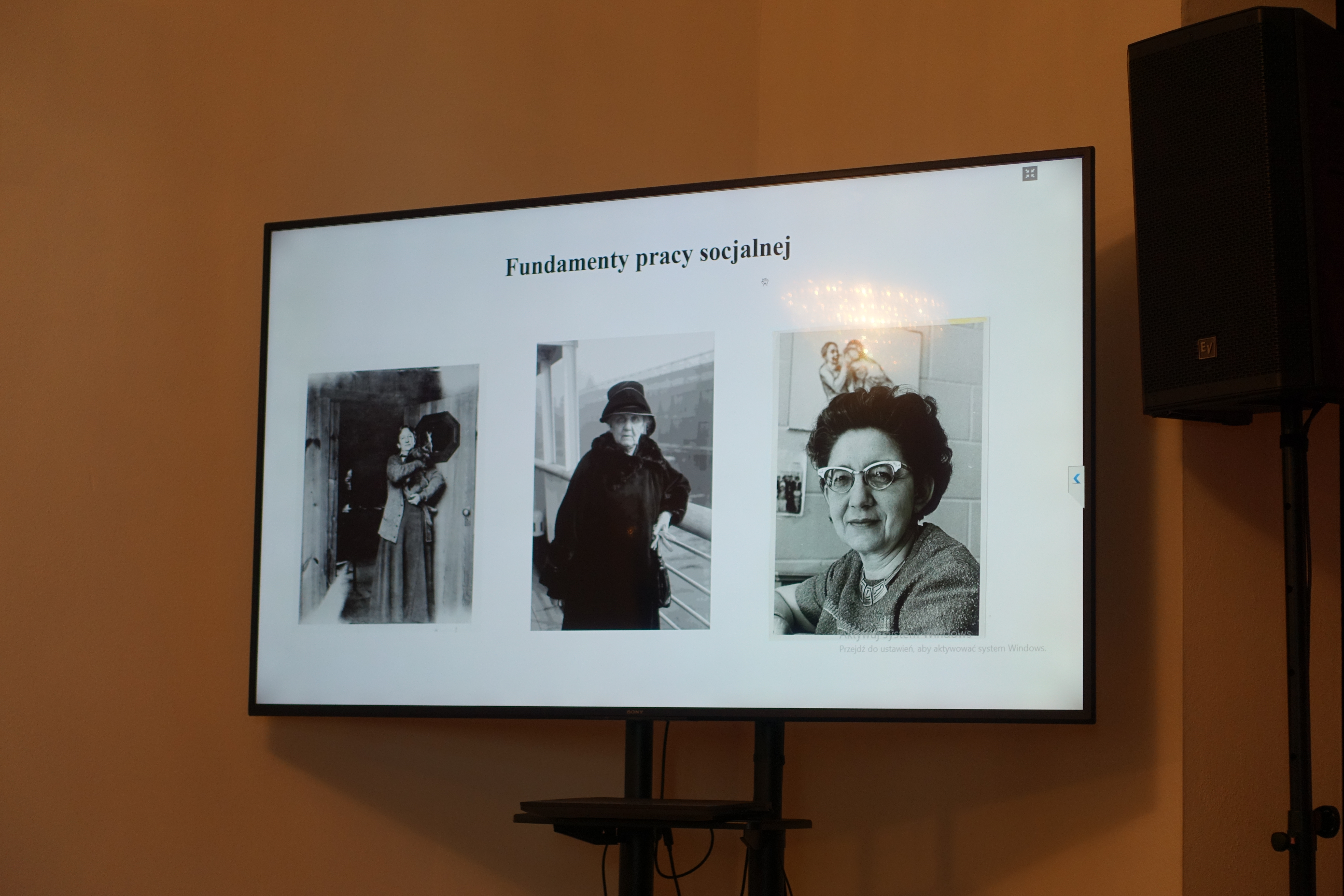dr hab. Monika Oliwa-Ciesielska prof. UAM – wygłosiła referat dotyczący rozdźwięku pomiędzy potrzebą profesjonalizacji m.in. w kształceniu do pracy socjalnej, a wywieraną presją usługowości pomijającą indywidualny i humanistyczny wymiar pomagania.
