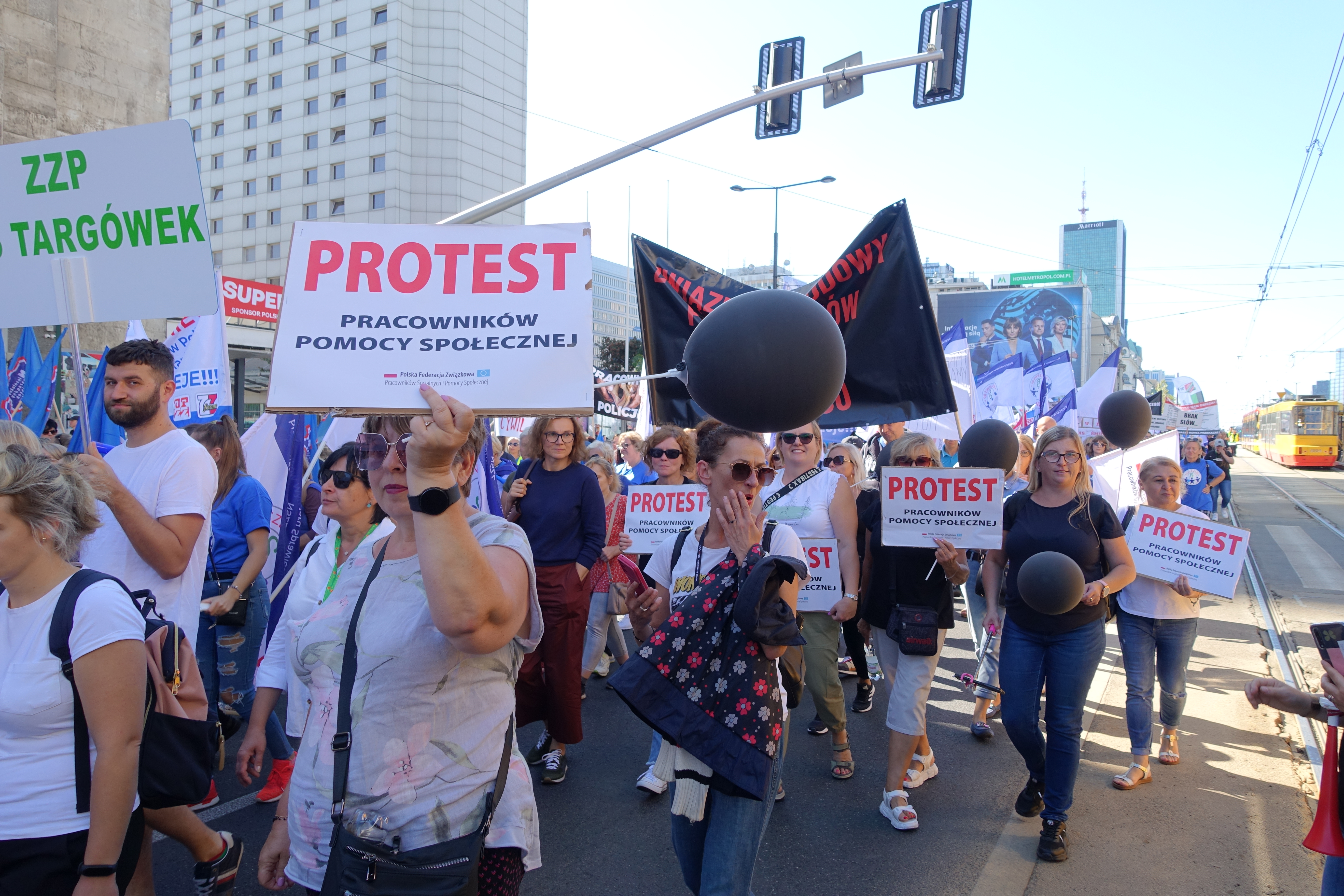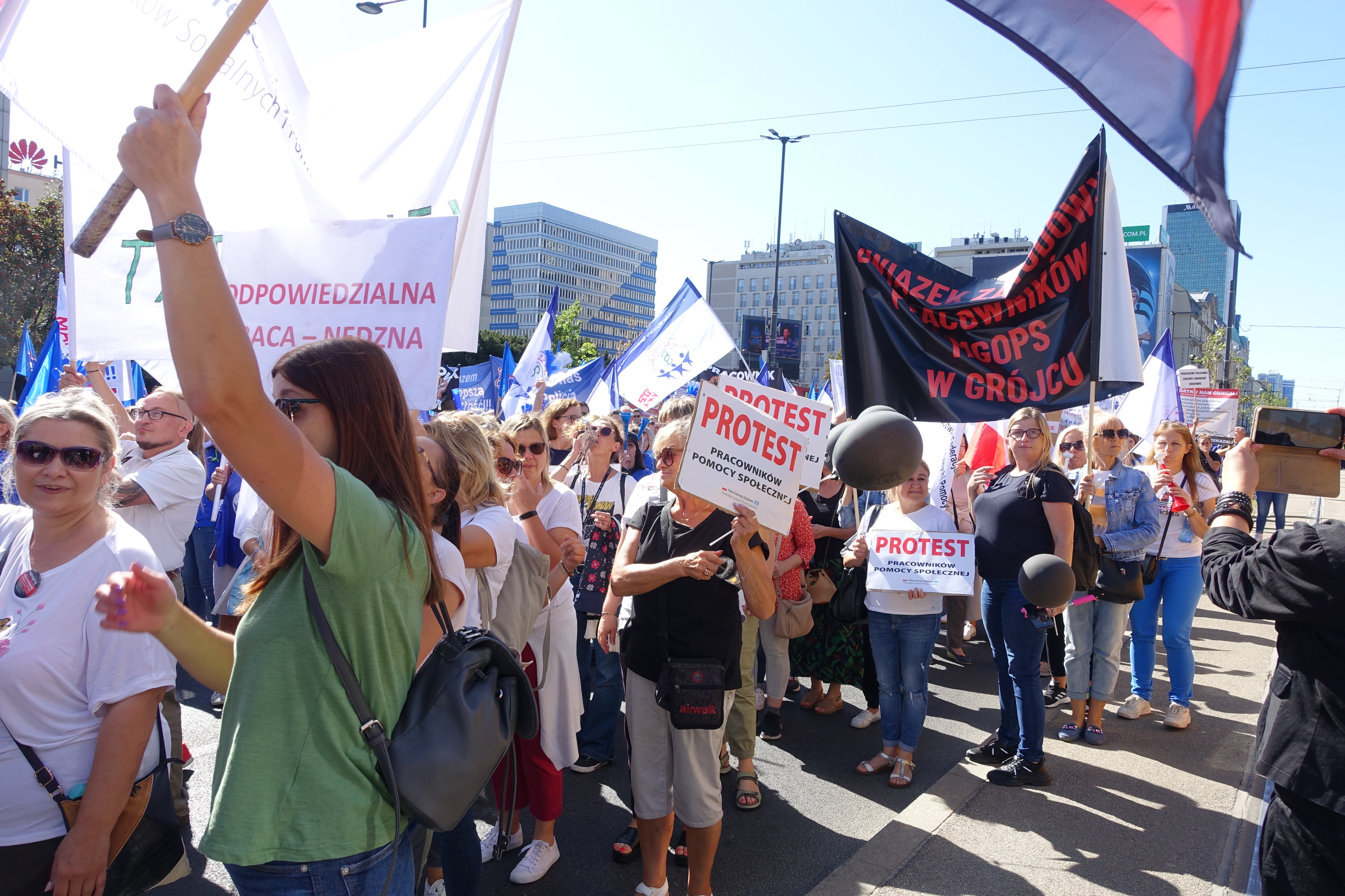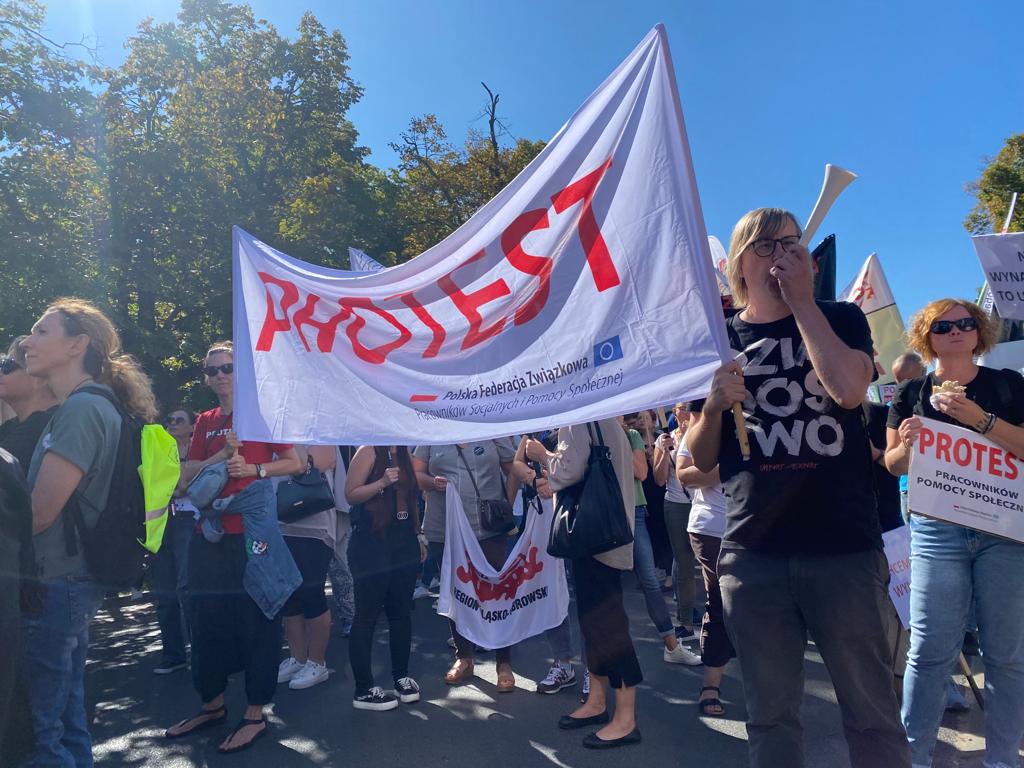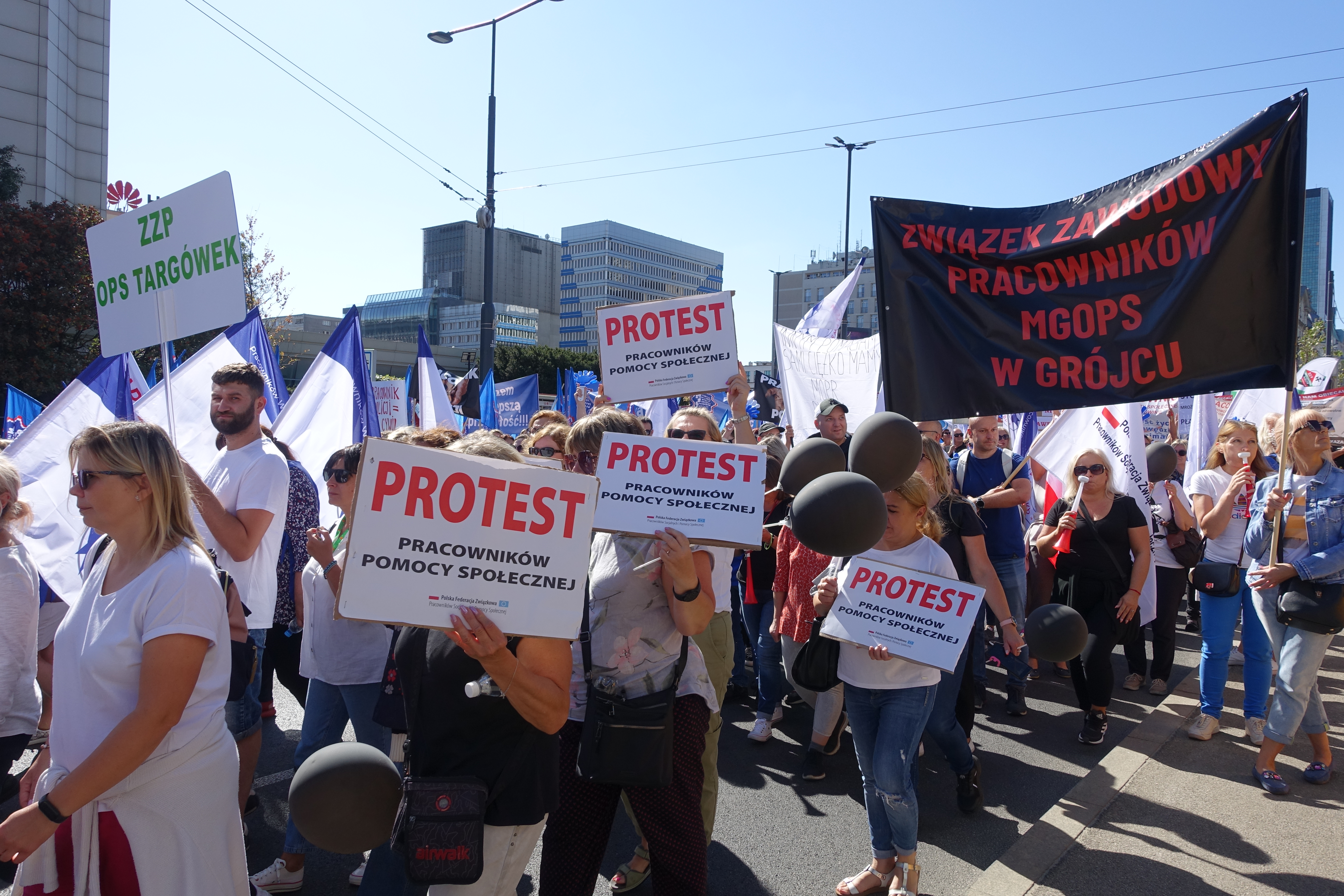 Pracownicy pomocy społecznej dołączyli do ogólnopolskiego Protestu Pracowników Sfery Publicznej. Wraz z pozostałymi przedstawicielami zawodów realizujących zadania publiczne przemaszerowaliśmy ulicami Warszawy, by przed siedzibą Sejmu oraz Premiera złożyć petycję, a przede wszystkim zamanifestować nas sprzeciw wobec polityki rządu w zakresie warunków wynagradzania i pracy w naszej branży.