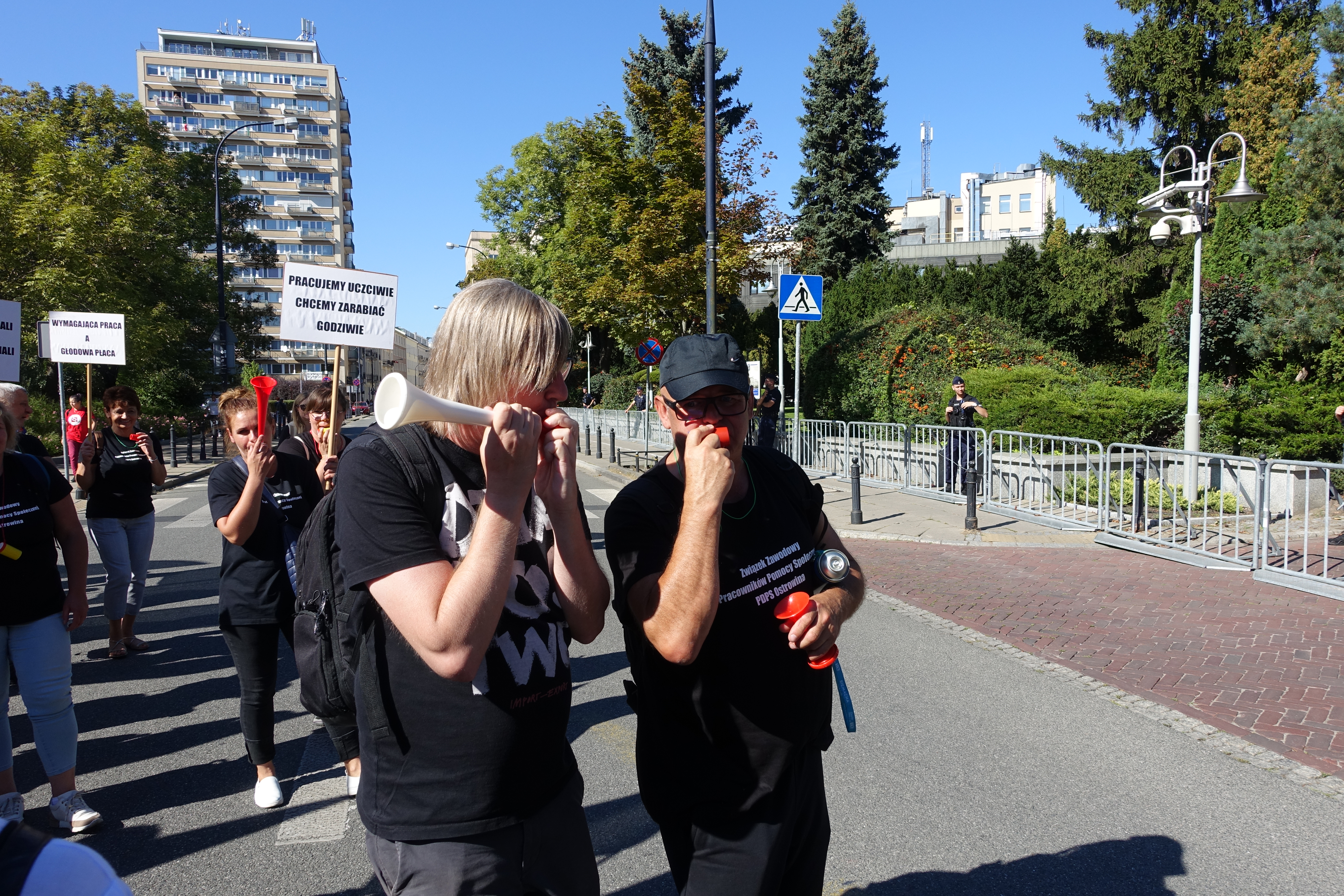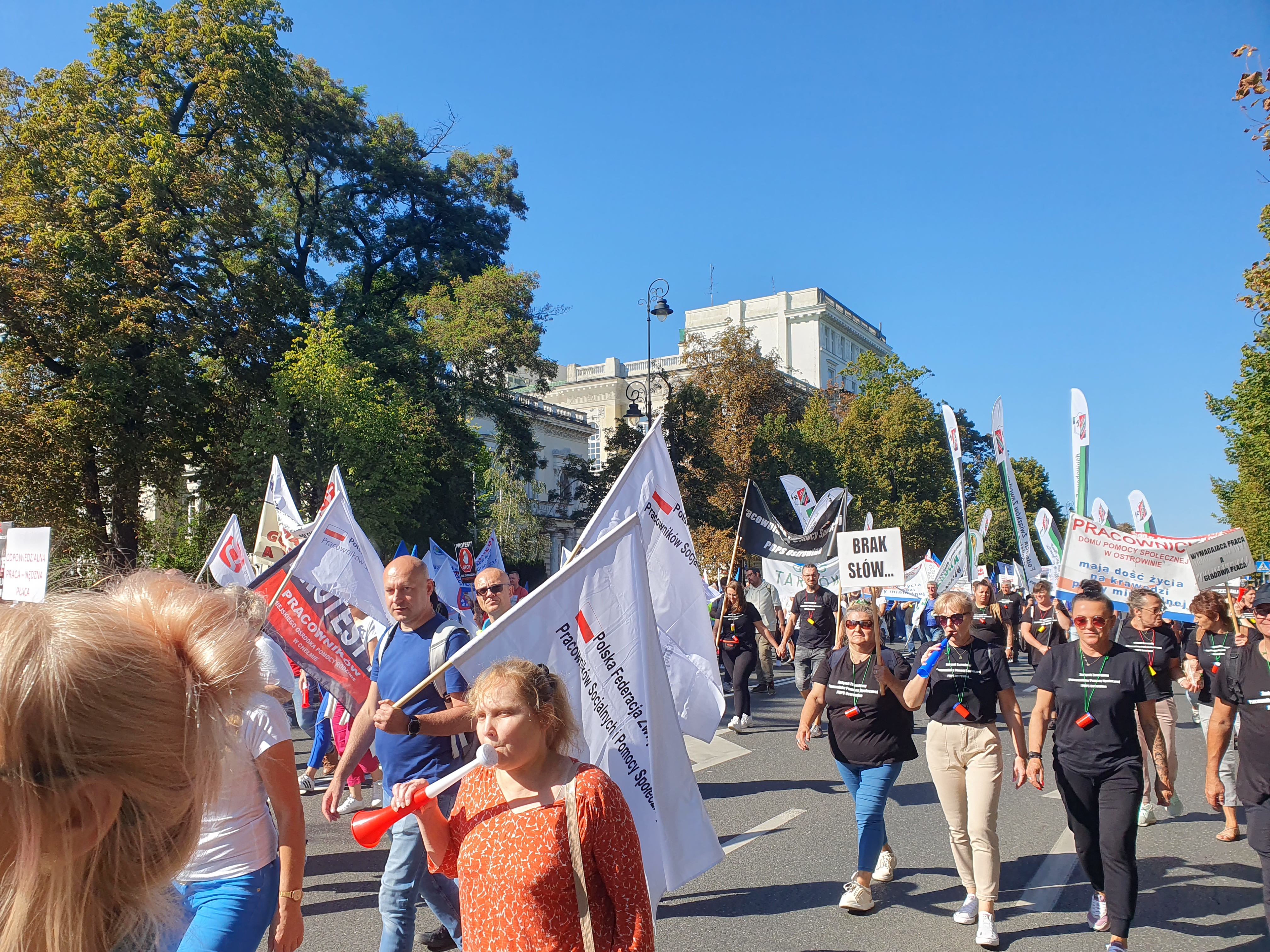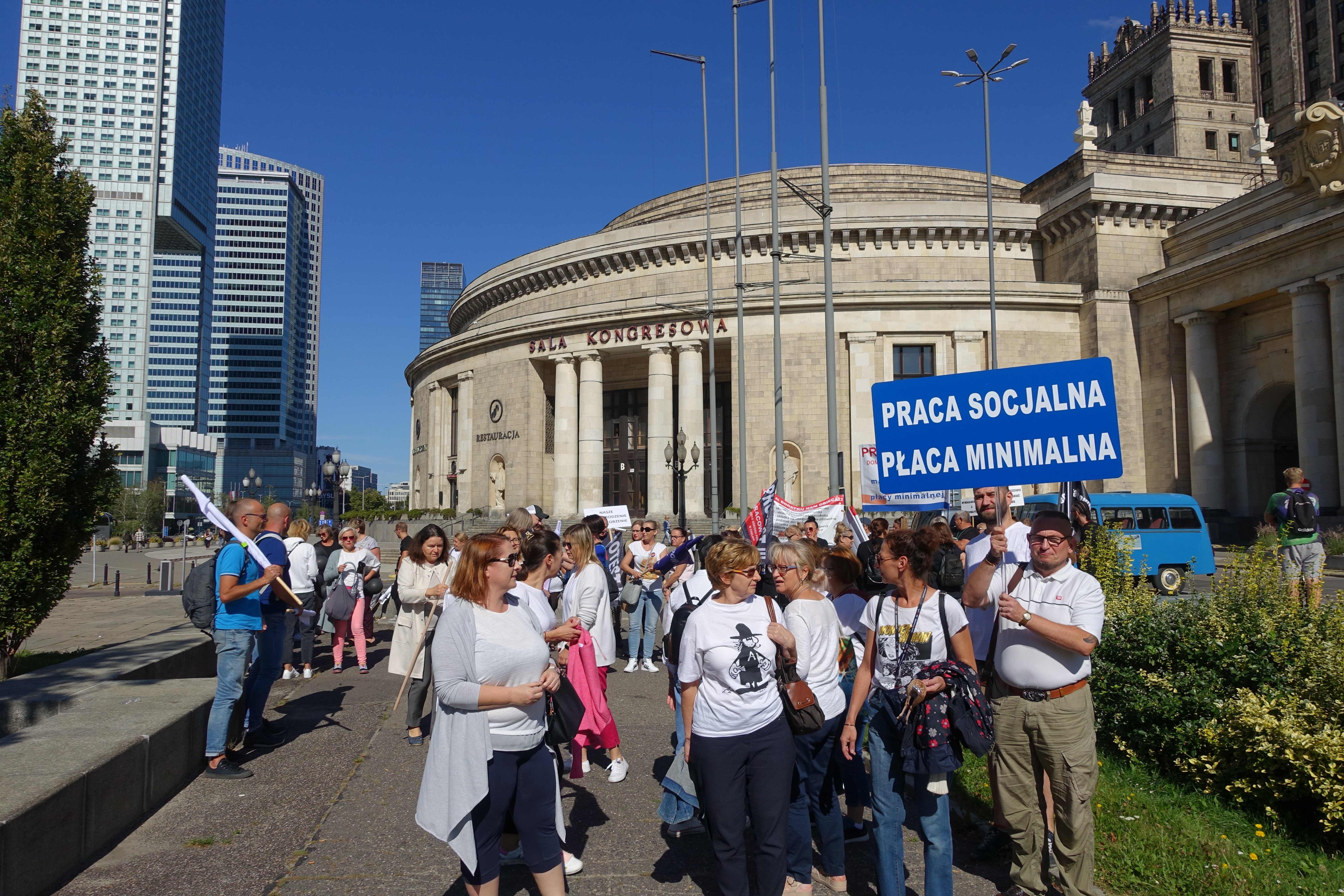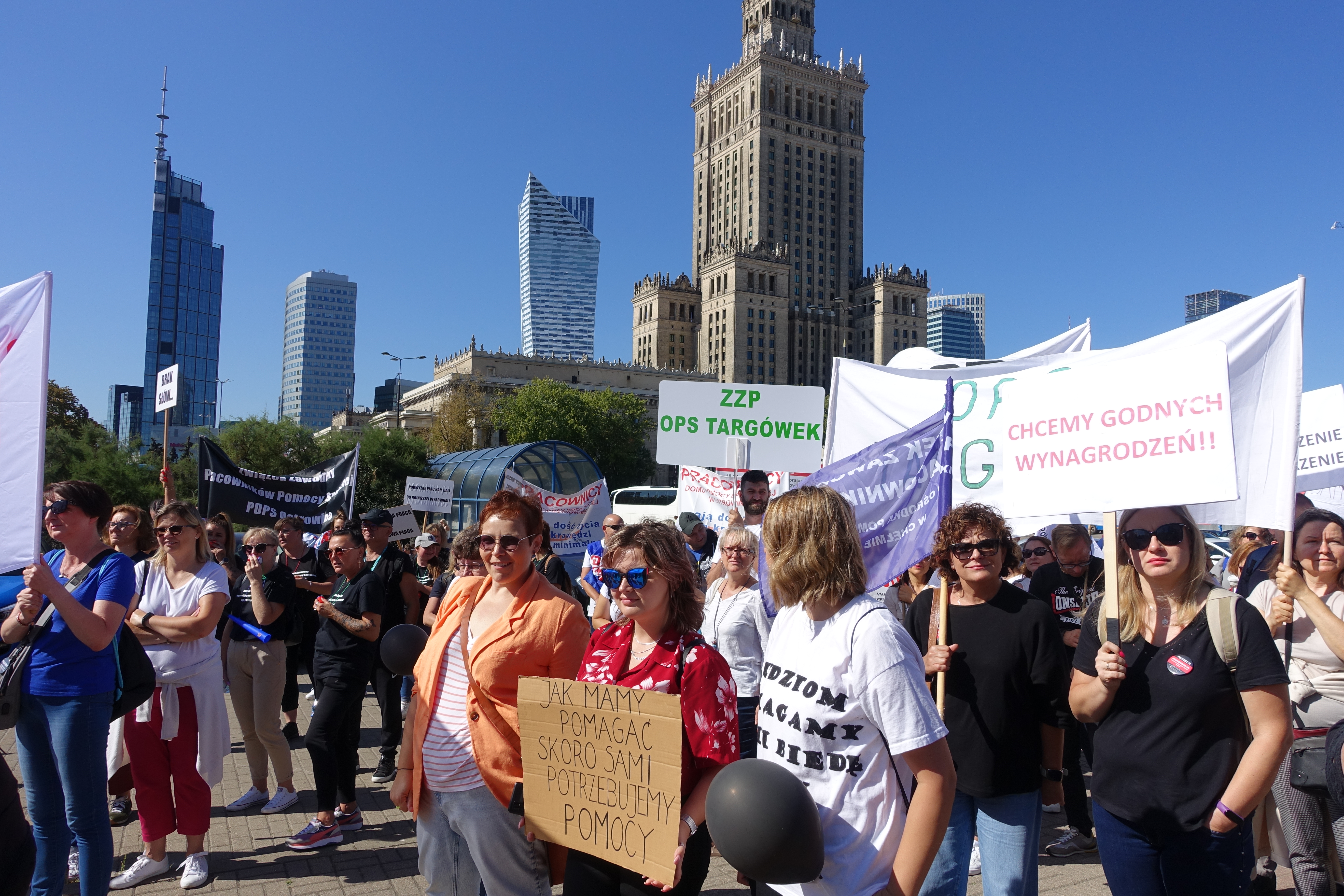 Pracownicy pomocy społecznej dołączyli do ogólnopolskiego Protestu Pracowników Sfery Publicznej. Wraz z pozostałymi przedstawicielami zawodów realizujących zadania publiczne przemaszerowaliśmy ulicami Warszawy, by przed siedzibą Sejmu oraz Premiera złożyć petycję, a przede wszystkim zamanifestować nas sprzeciw wobec polityki rządu w zakresie warunków wynagradzania i pracy w naszej branży.