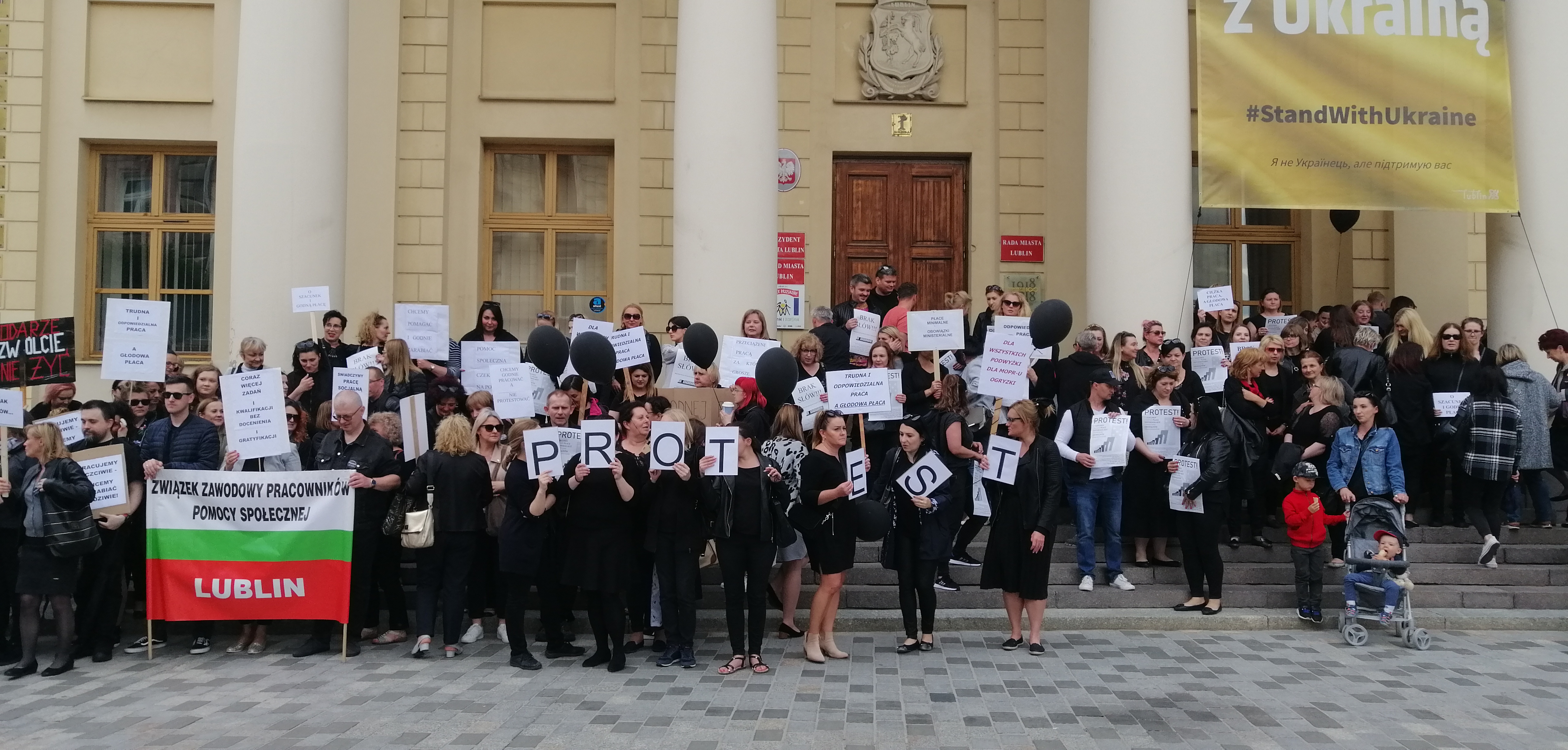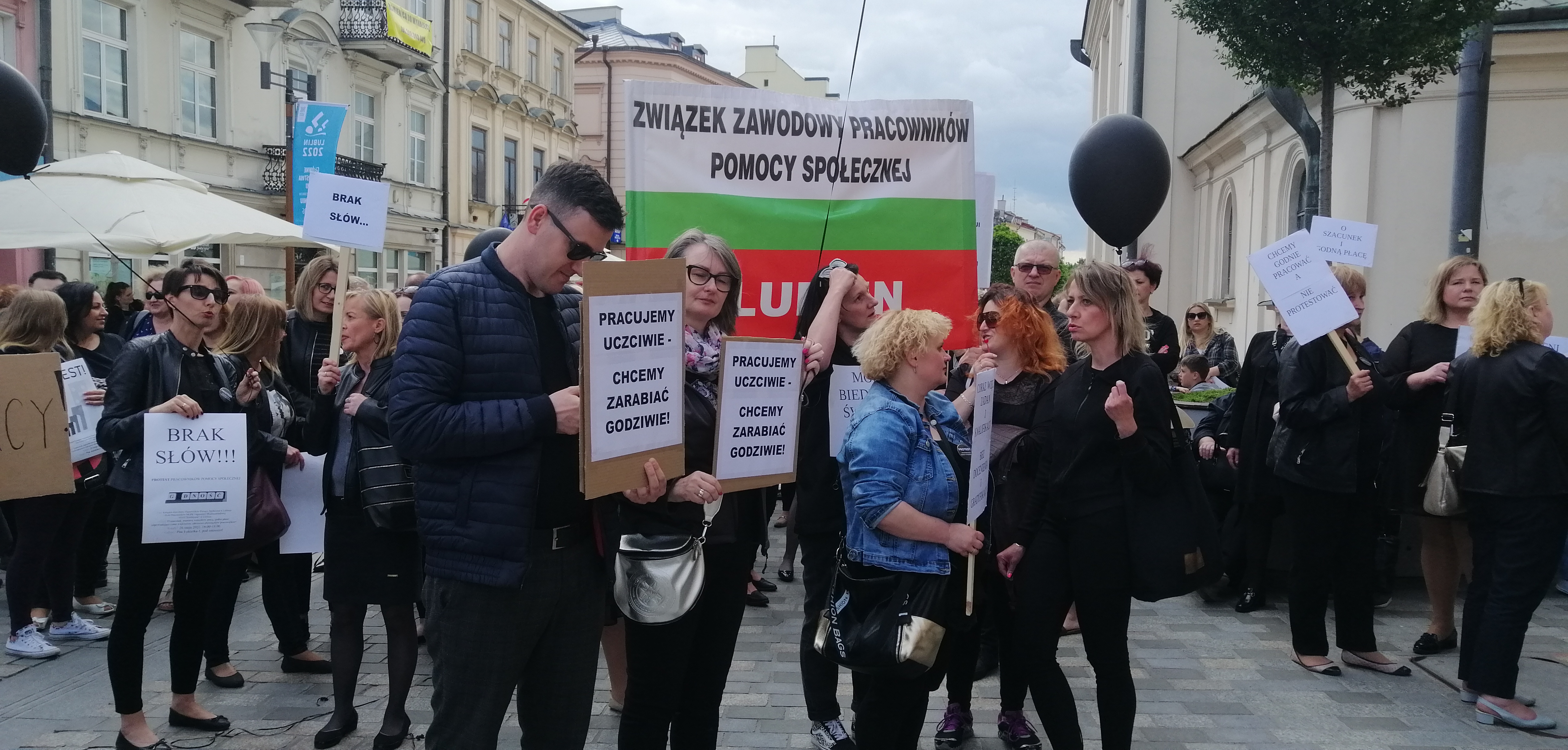 Związek Zawodowy Pracowników Pomocy Społecznej oraz Koło Pracowników MOPR Organizacji Międzyzakładowej NSZZ "Solidarność" domagają się podwyżek dla pracowników i godnych warunków pracy. Zatrudnieni w MOPR w Lublinie są przeciążeni coraz większą liczbą obowiązków i zadań do realizacji. Nie wiąże się to że wzrostem wynagrodzeń, przez to właśnie wzrasta ich frustracja. Żeby skutecznie pomagać sami musimy godziwie zarabiać i być traktowani z szacunkiem. Bez przymuszania do dodatkowej pracy i z faktycznym respektowaniem kodeksu etycznego. Naszym zdaniem konieczne jest też są też działania przeciwdziałające zjawiskom mobbingu i dyskryminacji.