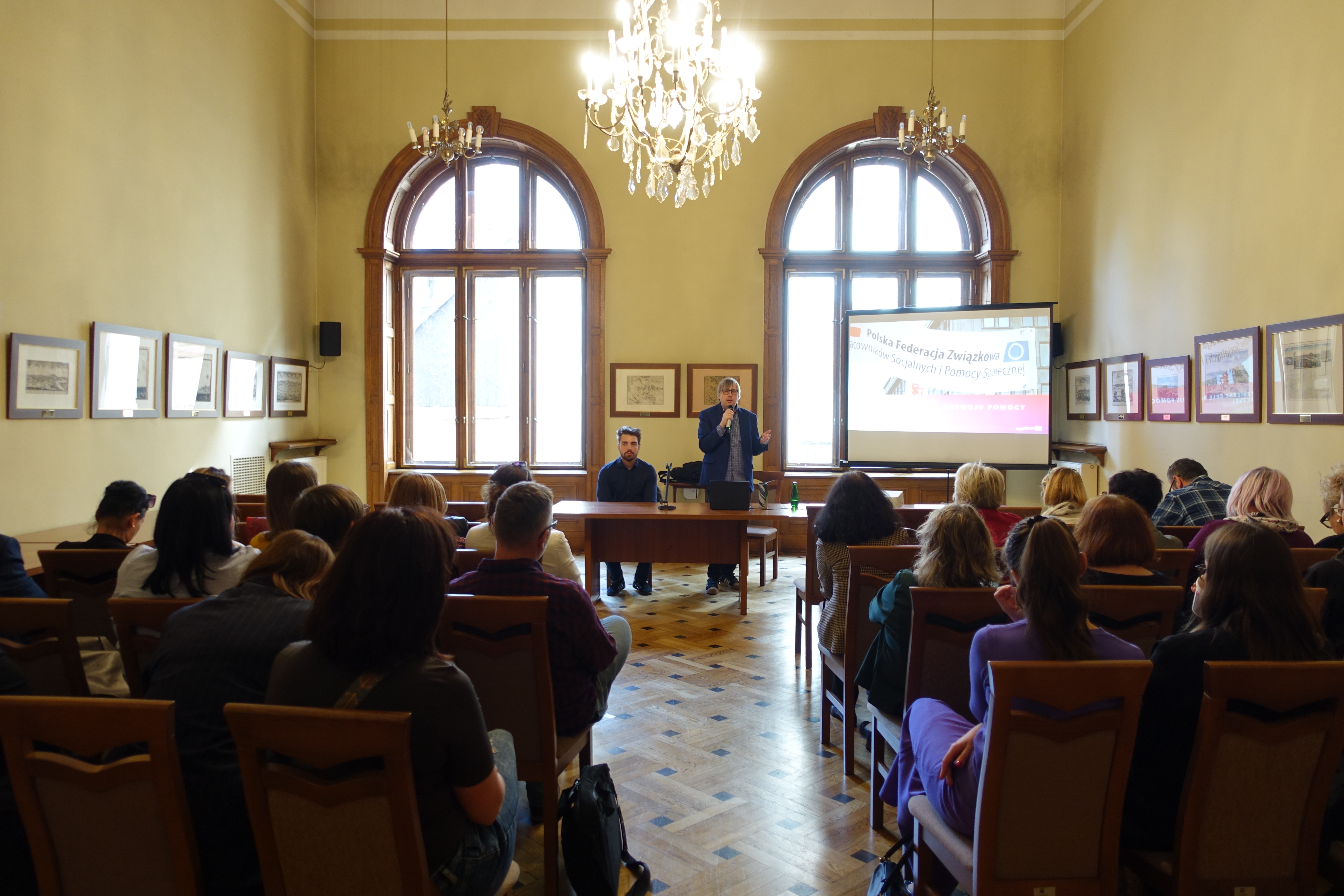 Miesiąc, w którym obchodzimy Światowy Dzień Pracy Socjalnej (WSWD) zakończyliśmy konferencją w Krakowie pn. ”Praca socjalna i pomoc społeczna. W kierunku pragmatyki reinstytucjonalizacji” (25.03.2026 r.). Ponad 100 uczestników – naukowców, praktyków, studentów oraz samorządowców, debatowało w zabytkowych wnętrzach krakowskiego ratusza m.in. o zagrożeniach związanych z postępującym procesem deprofesjonalizacji. Szczególnie dobitnie wybrzmiał referat prof. Tadeusza Gadacza (AGH), który w sposób krytyczny mówił o elementach pozorności dialogu m.in. ze strony rządzących. Dialogu, który, jeśli nie zawiera uznania i podmiotowości partnerów, staje się wyłącznie fasadą i sposobem prowadzenia polityki informacyjnej, a nie realną i sprawczą rozmową.