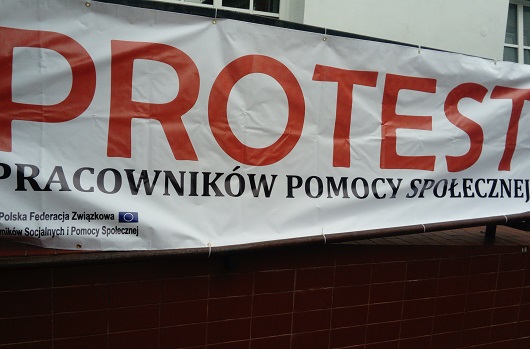 Pracownicy MOPS w Ciechanowie zrzeszeni w miejscowym Związku należącym do Federacji rozpoczęli protest. Na budynku Ośrodka został umieszczony baner, a związkowcy ubrani na czarno rozdawali ulotki przed budynkiem magistratu.