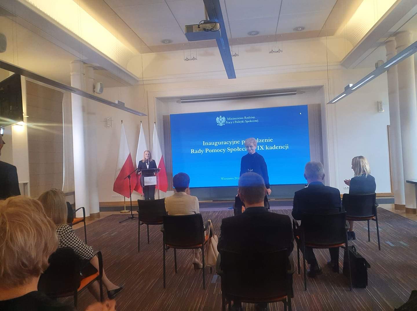 Inauguracyjne posiedzenie Rady Pomocy Społecznej IX kadencji odbyło się dziś w Warszawie. W uroczystości wzięła udział wiceminister rodziny, pracy i polityki społecznej Pani Iwona Michałek. Odczytano także list od minister - Pani Marleny Maląg skierowany do członków nowej Rady. Akty powołań do Rady zostały wręczone osobom reprezentującym m.in. jednostki organizacyjne pomocy społecznej, jednostki samorządu terytorialnego, wojewodów, organizacje społeczne i zawodowe, kościoły i inne związki wyznaniowe oraz środowiska naukowe.