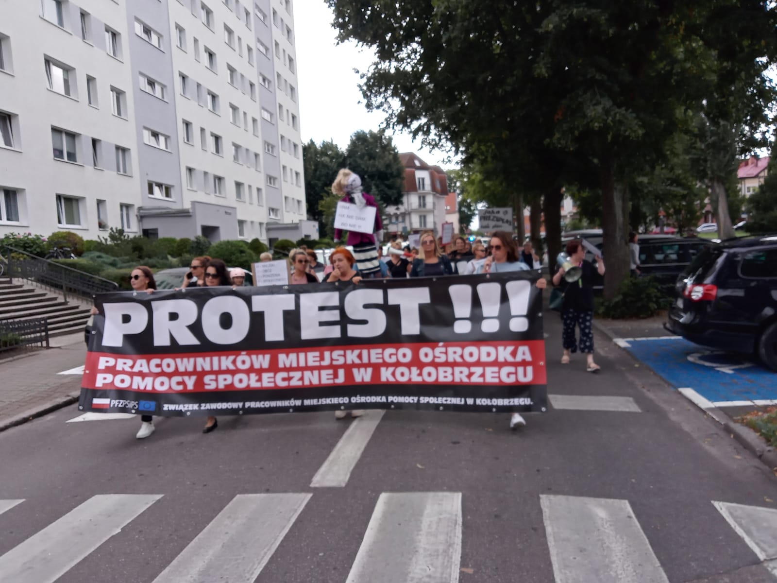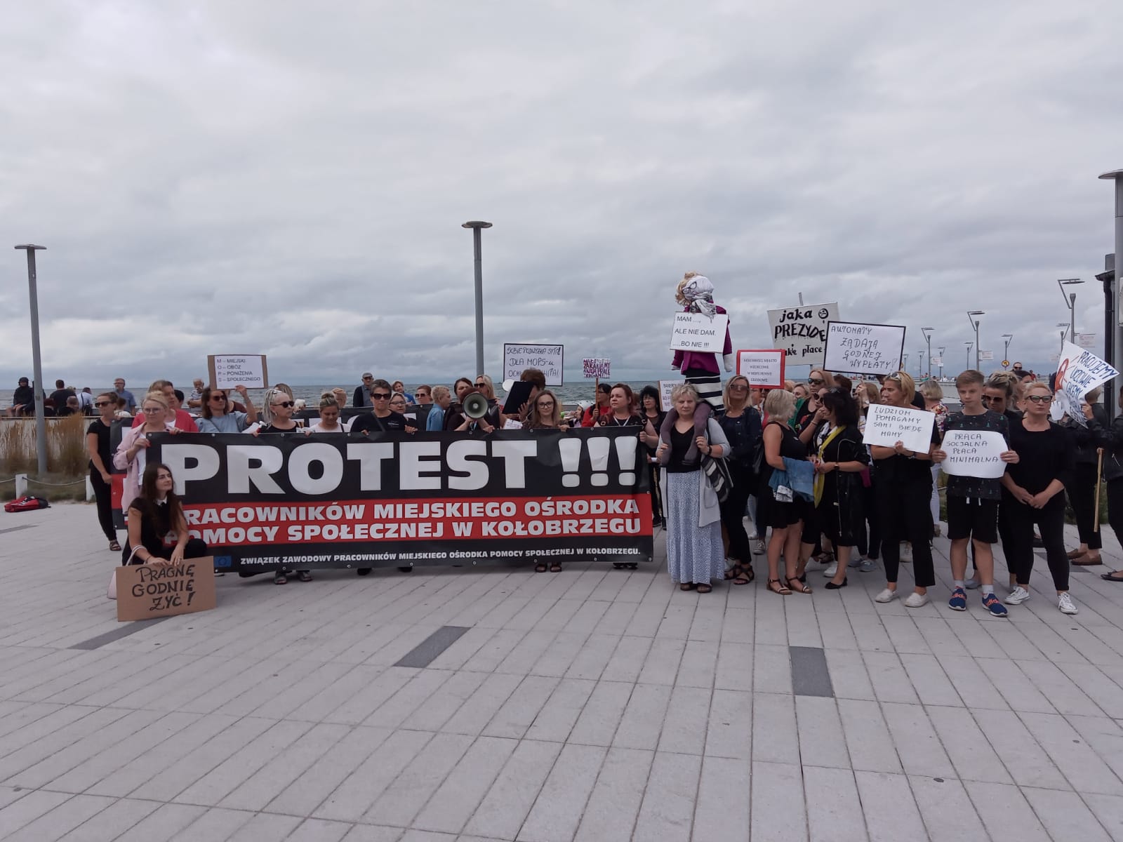 Protestujący pracownicy Miejskiego Ośrodka Pomocy Społecznej w Kołobrzegu przeszli głównymi ulicami miasta, a swoją manifestację zakończyli w miejscu znanym każdemu turyście, czyli nieopodal kołobrzeskiego molo. Odwiedzający Kołobrzeg dowiedzieli się, że miasto znane m.in. z luksusowego wypoczynku i drogich nieruchomości, swoim pracownikom zapewnia „paragony grozy” cały rok, a także nadal niedostatecznie efektywnie dba o ich wynagrodzenia. Wcześniej po ulicach Kołobrzegu poruszało się auto z banerami informującymi o proteście w języku polskim, angielskim i niemieckim. Związkowcy zapowiadają dalsze akcje protestacyjne.