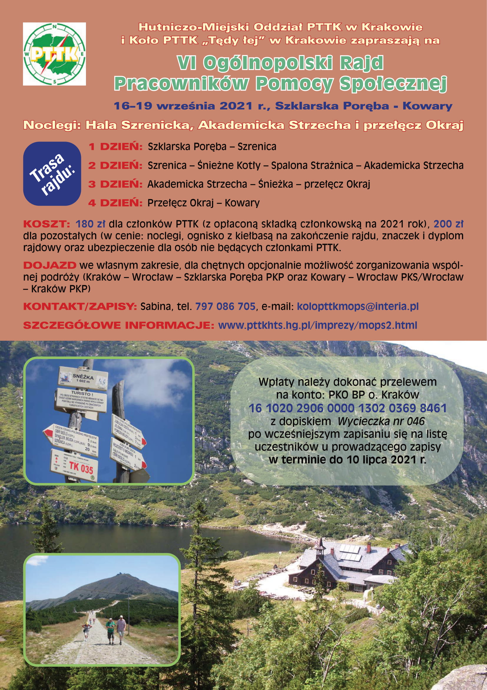 Wracamy do pieszych wędrówek pracowników pomocy społecznej. W dniach 16-19 września br. odbędzie się VI Ogólnopolski Rajd Pracowników Pomocy Społecznej. Tym razem szlakiem Szklarska Poręba-Kowary. To może być atrakcyjne zakończenie lata w miłym towarzystwie, więc zachęcamy do zapisywania się jeszcze do 10 lipca. Szczegóły poniżej.