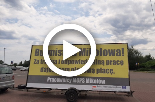 W ostatni weekend w Mikołowie poruszał się pojazd z reklamą mobilną informującą o trwającym sporze zbiorowym. Ta forma akcji protestacyjnej ma celu ponowne zwrócenie uwagi na problem, który nie został rozwiązany, bowiem strona społeczna do dnia dzisiejszego nie otrzymała żadnej propozycji zawarcia porozumienia dotyczącego podwyżek wynagrodzeń, które pozwoliłyby na godne wynagradzanie pracowników MOPS.